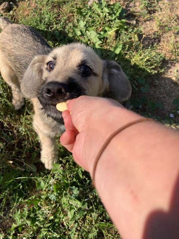 Jelimánkovi jsou asi 3 měsíce a už si musel zažít špatné zacházení. Ze začátku se bojí cizích lidí a zvuků, krčí se v rohu a čeká, co bude :-( Trvá to ale jen chvilku, než zjistí, že mu nechcete ublížit. Jakmile někoho pozná, přepne se do modu - štěně vrtichvost a lítá sem tam a pořád vás pusinkuje :-). Hledá někoho citlivého, kdo pozná když bude mít z něčeho strach a dodá mu odvahu. Potřebuje vlídný přístup a zároveň někoho, kdo mu dodá sebevědomí a bude ho vychovávat jako každé štěně, doporučujeme navštěvovat i cvičák nebo psího trenéra kvůli socializaci. Je to kříženec teriéra, k tomu bázlivý ze začátku. takže výchova bude potřeba, aby se při nabytí sebevědomí nezačal před neznámými věcmi a lidmi bránit. Snášenlivost k dětem je potřeba vyzkoušet, věříme, že k rozumným dětem by mohl do adopce jít. V dospělosti předpokládáme střední až větší vzrůst. Do adopce odejde očkované, čipované, odčervené, odblešené, na základě podpisu adopční smlouvy a uhrazení příspěvku na péči, s podmínkou kastrace v dospělosti. Kontakt 736 769 601