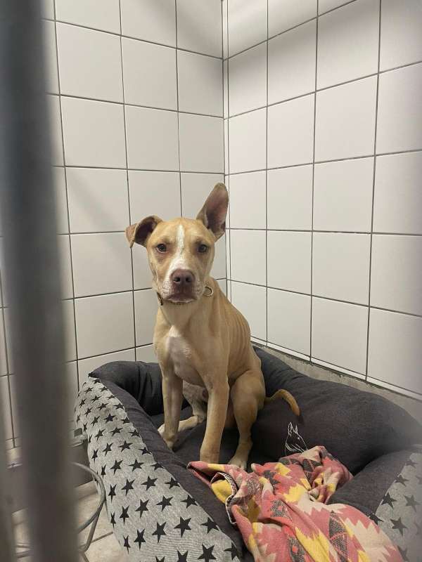 DAYO byl převzat z jiného útulku, je to kříženec bull plemene. Miluje lidi, děti, je přátelský, citlivý a hodný. Na bulla je dostatečně jemný, žádný "tank a hromotluk",váží pouze 18kg, ale potřeboval by trochu přibrat, má dlouhé nožky, byl by vhodný i na nějaký psí sport nebo běhání. Bohužel se netváří příliš mile na ostatní psy, je možné, že socializaci ještě dožene, ale je možné, že bude celý život sólistou. Hledá aktivní rodinu, která ho dokáže zabavit, unavit a učinit šťastným, klidně s dětmi, s těmi se dá vyvádět mnoho lumpáren, bez jiných zvířat. Dayo je citlilvka, potřebuje gauč a teplo, není zvědavý na hlídání a mrznutí venku, na to je příliš kontaktní a mazlivý. Umí si otvírat dveře a je obecně dost vynalézavý :-). Do adopce odejde očkovaný, čipovaný, odčervený, odblešený, na základě podpisu adopční smlouvy a uhrazení finančního příspěvku,s podmínkou kastrace. Kontakt 736 769 601
