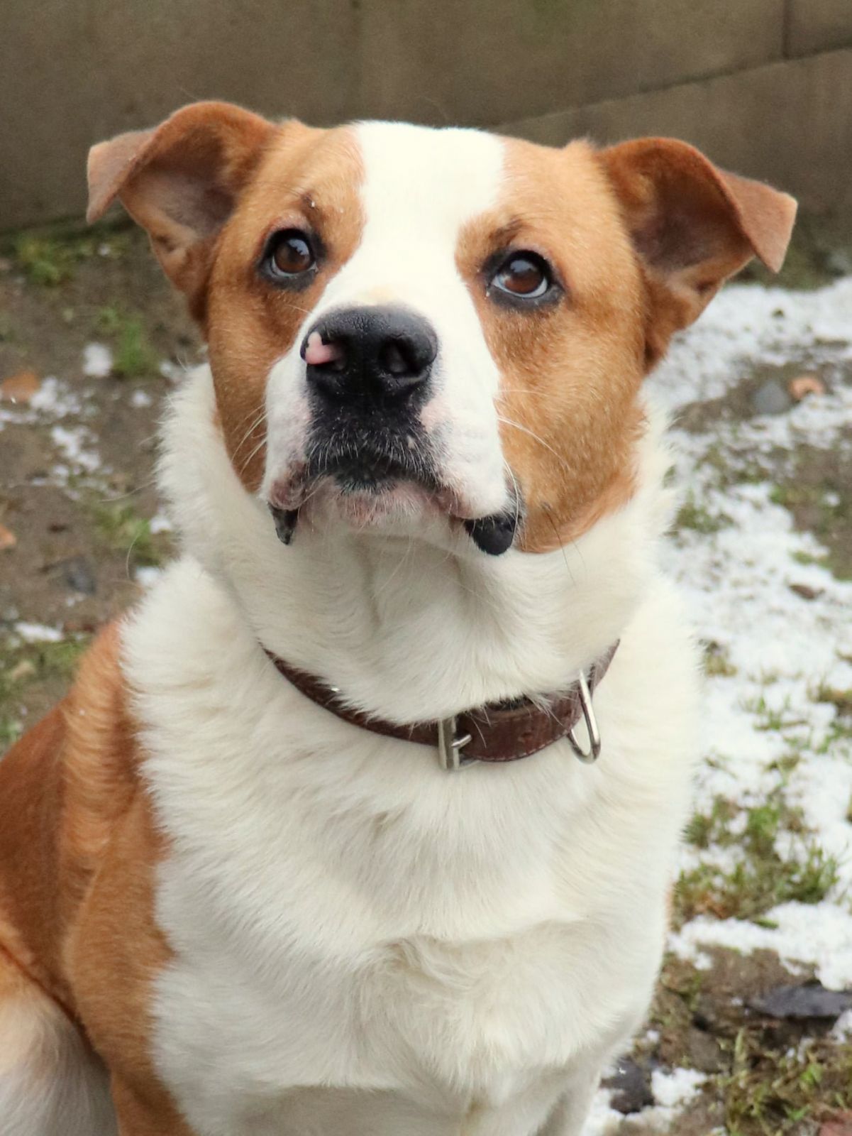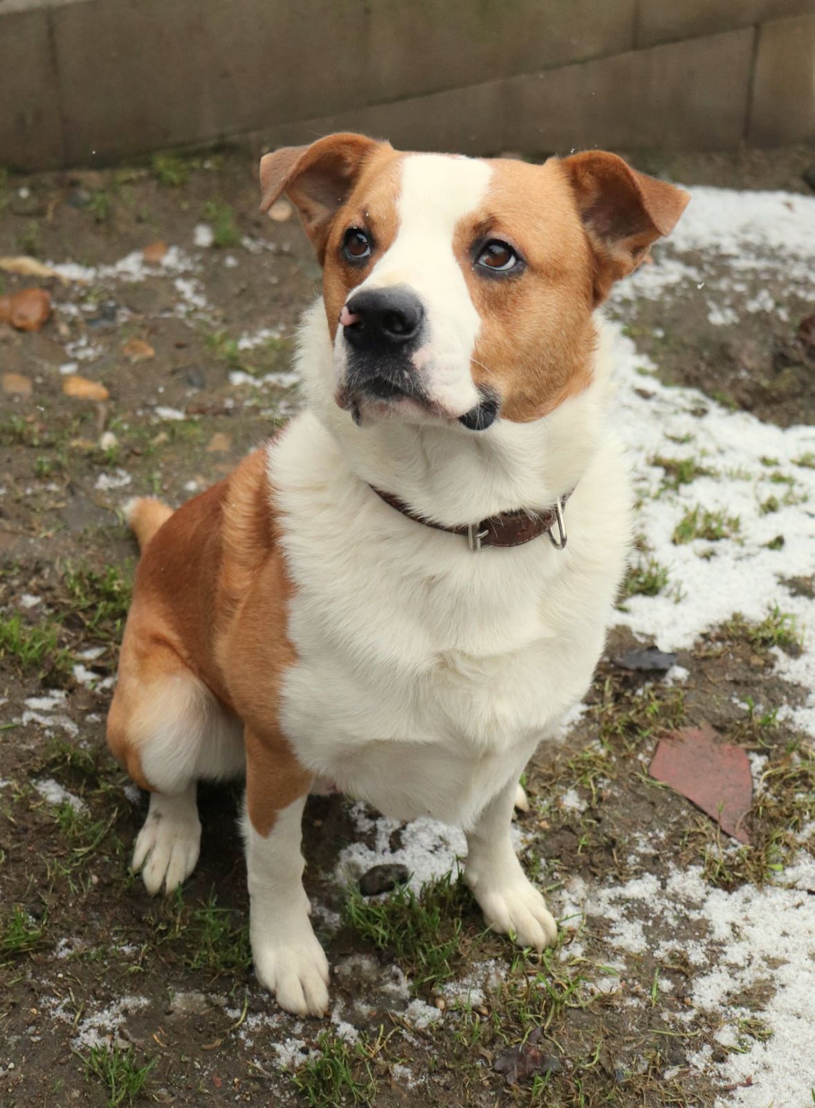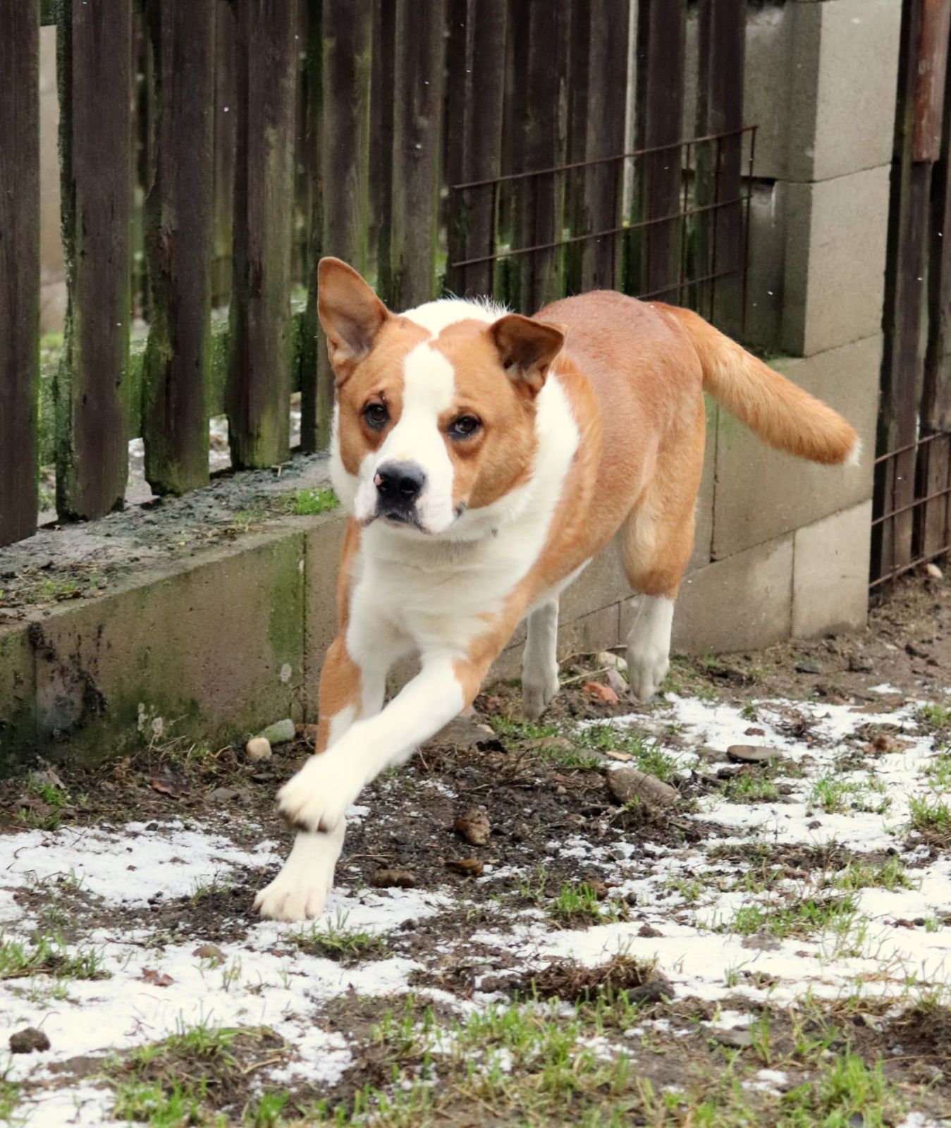 KING aneb energie sbalená na cesty, výzva pro sportovce a siláky . Je to velmi mladý vzhledově originální kříženec, váží 25kg, je přátelský, kontaktní a pořádně temperamentní. Je to takový veselý tank, umí dávat pusinky, ač trochu neohrabaně, skáče, snaží se chytat vodítko, kapuci, prostě cokoliv, s čím by mohla být sranda. Je ho všude plno, potřebuje pohyb, aktivitu, vyžití pro tělo i hlavu a správné vedení. Potřebuje majitele, co ho dokáže vyklidnit, unavit a vymazlit. Má pokaždé takovou radost, že se mu někdo věnuje, že jakýkoliv úkon typu nasazení obojku vyžaduje hbitost, sílu a postřeh majitele, protože King se samým štěstím vrtí tělem i duší. K dětem by mohl jít pouze odrostlejším, má velkou sílu a je to hromotluk, malé dítě by porazil. Rozhodně hledá aktivní rodinu, která ho zvládne fyzicky utahat, a bude se s ním věnovat nějakému sportu, je velmi chytrý a vynalézavý. King je čistotný, vhodný do bytu i do domu s přístupem ven. Vrátil se nám z adopce po roce, prý se jednorázově ohnal po dítěti, které přijelo na prázdniny :-(. King byl doma stoprocentně čistotný, zvyklý na jiné pejsky i kočičky, zvyklý i na děti. Do adopce odejde kastrovaný, očkovaný, odčervený, odblešený, čipovaný, oproti podpisu adopční smlouvy a uhrazení finančního příspěvku. Požadujeme minimálně 2 návštěvy útulku. Kontakt 736 769 601