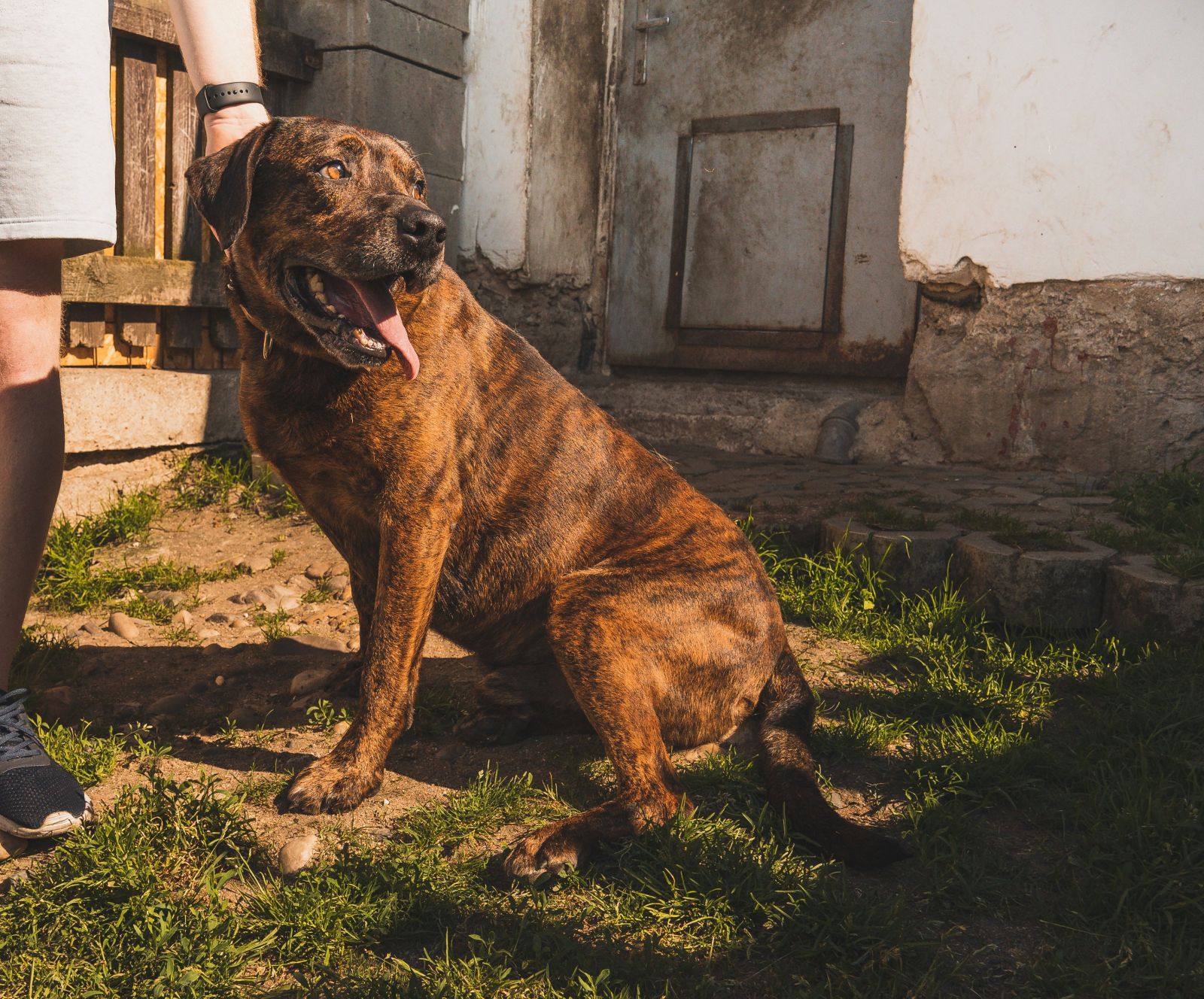 Bramborák - to jméno se k němu hodí :-) Je to malinko ignorant. Ideální parťák pro někoho, kdo hledá nenáročného velkého psa, hodného, k dětem jako člena rodiny, pro němž nebude chtít, aby skákal přes překážky, ale aby prostě byl, sdílel domácnost, mazlil se a užíval si role rodinného mazlíčka. Bramborák je asi čtyřletý pes, spíš klidnější povahy, žádné aktivní trdlo. Je naprosto bezproblémový na manipulaci i ošetřování. Bohužel při delším pobytu v útulku se u něj projevila separační úzkost, Bramborák je v útulku úplně zoufalý, demoluje a je vystresovaný, u toho si sám ubližuje. Umí zdolat -rozkousat i plot. Po dobu, co byl v adopci, uměl zůstat dám doma úplně v klidu i několik hodin a jen spal. Při přesunu do nového domova se ale může jeho separační úzkost opět provejit, než si zvykne. Obecně je to zlato, vhodný i k dětem, jen bude potřebovat minimálně ze začátku neustálou přítomnost člověka. Velký dobrák Bramborák je opravdu velký, váží 46kg a když se rozhodne, že někam jde, tak jde a těžko se mu vysvětluje opak. Zapře se váhou svého těla a nechápavě vyděšeně kouká, co po něm chcete. Nikdy na nás nezavrčel a výborně funguje na pochoutky. Je čistotný, spokojený v bytě, i i v domě s výběhem na svou zahrádku. Bohužel je to útěkář,je potřeba mít dobře zabezpečený pozemek, dokáže si udělat díru v plotě. Ideální by byl asi jako jedináček, i když s pejsky se snese. Vrátil se nám z adopce jednou kvůli útěkům a odruhé kvůli změně rodinné situace, za kterou nemohl...Čeká na tu nejlepší rodinu! Do adopce odejde kastrovaný, očkovaný, čipovaný, odčervený, odblešený, na základě podpisu adopční smlouvy a uhrazení příspěvku na péči. Kontakt 736 769 601
