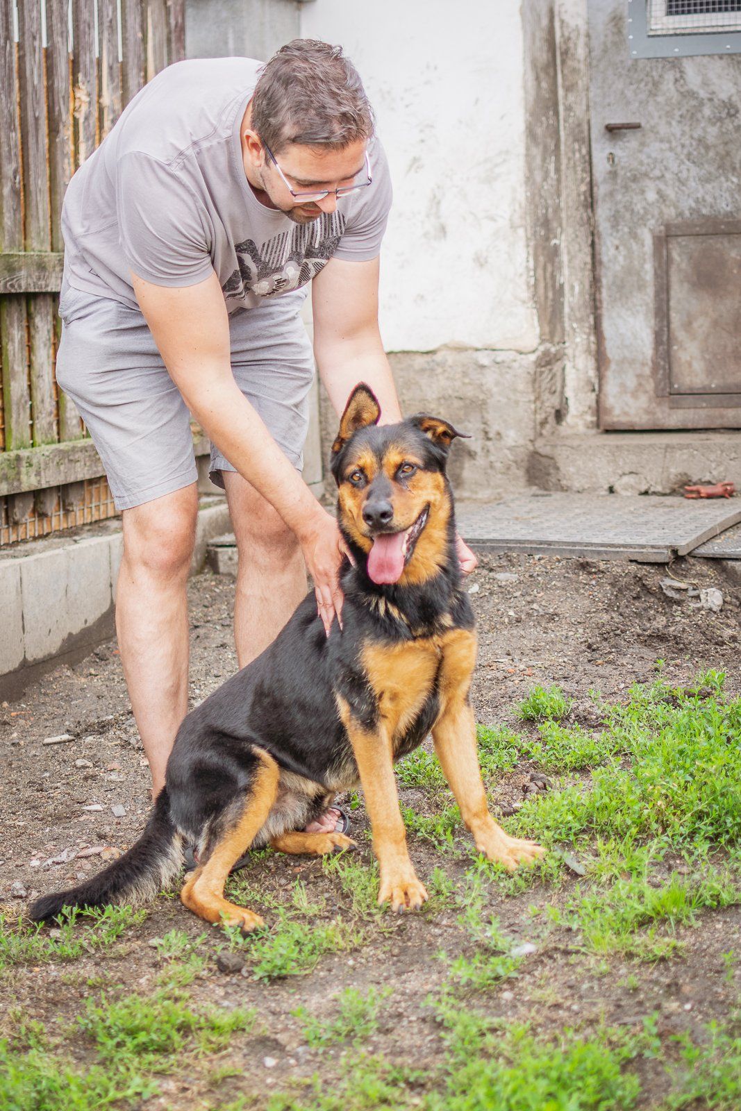 Cézar je veselý vyrovnaný velký pes. Byl "na zkoušku" v adopci, ale bohužel se nám vrátil. Doma vůbec nic neničil, neškrábal, neštěkal, vydržel sám doma. Miluje člověka a kontakt s nim. Miluje pohyb, procházky a pohyb na vzduchu, ale potřebuje přístup domů. Strašně rád vše pozoruje a sleduje, rád jezdí v autě, má celou hlavu vystrčenou z okna ven, pozoruje vše okolo. Je velmi vnímavý a chytrý. Umí ke mně, čekej, sedni, lehni. Bude i dobrý hlídač té své rodiny, ale rozhodně to není pes jen ne hlídání!!! Má velke srdce a miluje lidi. Neuvědomuje si svou velikost a je schopný nacpat se člověku do klína usnout spokojeně v náruči. To je úplně nejšťastnější. Cézar lépe respektuje muže, ale poslouchá a miluje i ženy, vše se mu dá dobře vysvětlit. Večer bude rád spát s Vámi, spí úplně nejraději v posteli a ještě radši je, když se k vám může přitulit. Je to vážně mazel, který potřebuje toho svého člověka a bude ho mít děsně rád. Rád rozdává pusinky a dává najevo svou lásku. Venku je akční, ale má své limity. Miluje běhaní za balonkem, ale má tendence přetáhnout své síly, je dobré to poznat a nechat ho i odpočinout. Má rád vodu, viděl ji teď v dospělosti asi prvně a chytal vlny. Cyklisti a jiné rychle hýbající předměty má tendence chytat. Pejsky (kluky) spíše nemusí, anebo to chce opatrneji, ale spíše se chce bránit, když na nej nějaky vrčí. S holkami je v pohode. Cézar odejde do adopce čipovaný, kastrovaný, očkovaný, odčervený, odblešený, na základě podpisu adopční smlouvy a uhrazení příspěvku na péči. Kontakt 736 769 601.