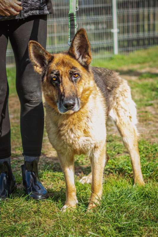 Arja je nádherná fenka německého ovčáka (křížence). Je jí 6 let a byla přijatá po majiteli. Je na svůj věk velmi čilá a aktivní, na vodítku ještě umí pěkně zatáhnout a klidně si s vámi i zaběhá. Je velmi hodná a chytrá, vhodná i k dětem. Ideální fenka pro průměrně aktivní rodinu, co hledá psa na procházky a výlety, ale nechce s ním už "makat" několik hodin denně. Uvítala by bydlení u baráku, pouze však s přístupem dovnitř do tepla a s kontaktem se svým pánem. V útulku ji máme trvale v teple uvnitř a je spokojená, nic neničí o samotě, není vhodná do boudy, nebo na dlouhodobý venkovní pobyt! Umí být poslušná. Ostatní pejsky si vybírá, některé snese, k většině se chová dominantně. Je komunikativní a dokáže si hodně věcí "vyštěkat". Potřebuje určitý řád ve výchově, pak bude poslouchat jak hodinky. Pravidelné cvičení by ji bavilo, na pochoutky reaguje výborně. Arja má lehkou poruchu štítné žlázy a začala brát léky. Do adopce odejde kastrovaná, očkovaná, čipovaná, odčervená, odblešená, na základě podpisu adopční smlouvy a uhrazení příspěvku na péči. Kontakt 736 769 601.