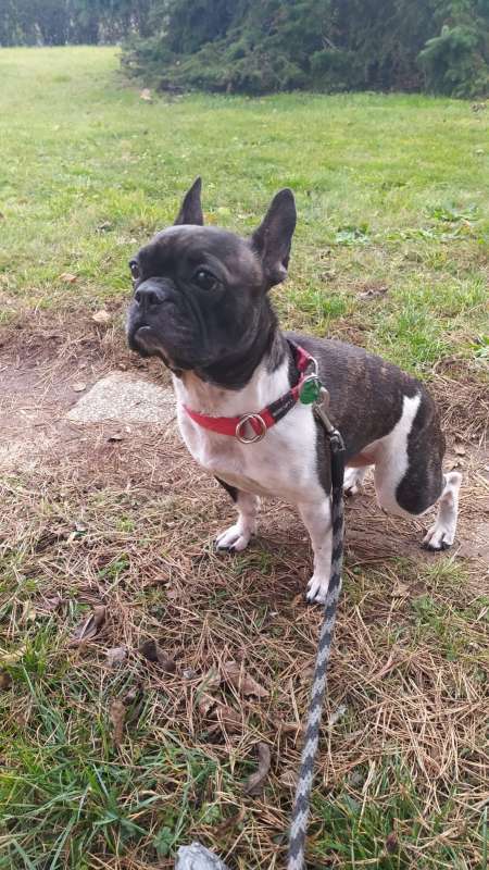 Miley je pětiletá fenka francouzského buldočka menšího vzrůstu. Chová se jako štěně vzhledem i povahou , miluje všechny hodné lidi, kteří ji pohladí a budou se ji maximálně věnovat. Venku zvládne turistický výšlap, ale rozhodně ji nevadí celý den proválet na gauči nebo v posteli pod dekou. Umí základní povely sedni, lehni, nesmíš, zůstaň. Její dobré vlastnosti jsou věrnost a oddanost, miluje mazlení a sezení na klíně, potřebuje domov, kde bude milovaná a kde bude moct být často s člověkem. Zvládne to i několik hodin doma sama, ale nesmí být v dosahu věci, které může rozkousat (knihy, boty, toaletní papír, noviny atp.). Sama doma je zvyklá na chodbě kde má pelíšek a nemá přístup do ostatních místností, úplně nejlepší by pro ni byl domov, kde může být neustále s někým, rozhodně by mohla chodit s páníčkem i do práce. Venku umí chodit na vodítku. Její záporné vlastnosti jsou nesnášenlivost narozených dětí a batolat. Za to se školáky si skvěle rozumí a hraje. Není vhodná ani do domova, kde je kočka (zvykla by si, ale první týdny by ji prohnala) nebo dominantní pes. Venku se rozbíhá za vším co dělá rámus a má kola (cyklisti, skateboard, traktor, sekačka, koloběžka). Miley je od malička na BARFu, žádnou alergii dosud neprojevila. Ve třech měsících byla na operaci oka s dermoidem, od té doby neměla s okem žádný problém a její zdravotní stav je dodnes též bez jediného problému. Miley se nachází b dočasné péči u původních majitelů, kteří se rozhodli ji hledat nový domov, protože bohužel nesnáší nově narozené dítě. Pro adopci je potřeba se přijet seznámit do dočasné péče a následně absolvovat pohovor v útulku. Do adopce odejde kastrovaná, očkovaná, čipovaná, odčervená, odblešená, na základě podpisu adopční smlouvy a uhrazení příspěvku na péči. Kontakt 736 769 601