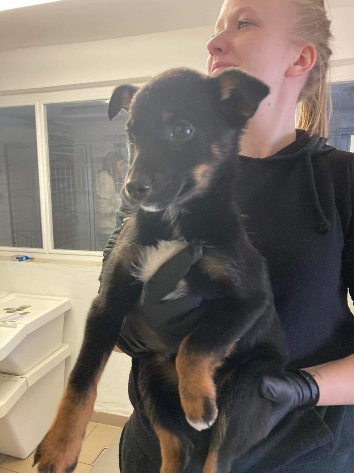 Začínáme štěňátkům vybírat domov. Neznáme plemeno, ani velikost v dospělosti, ale štěňata rostou jako z vody, předpokládáme střední vzrůst, možná i větší. Do adopce odejdou očkovaná, čipovaná, několikrát odčervená, odblešená, s podmínkou kastrace v dospělosti. Propustit domů je můžeme nejdříve 18.4. Kontakt 736 769 601