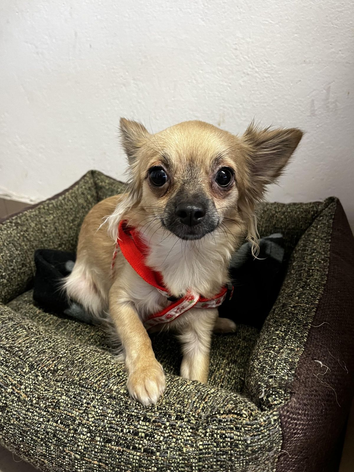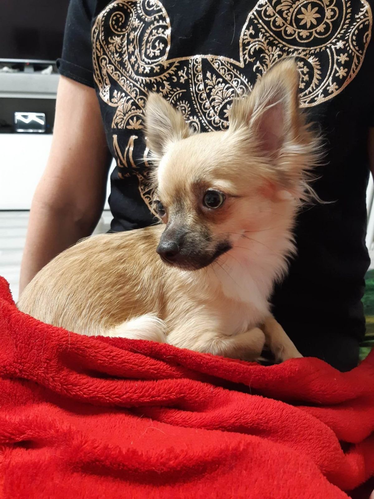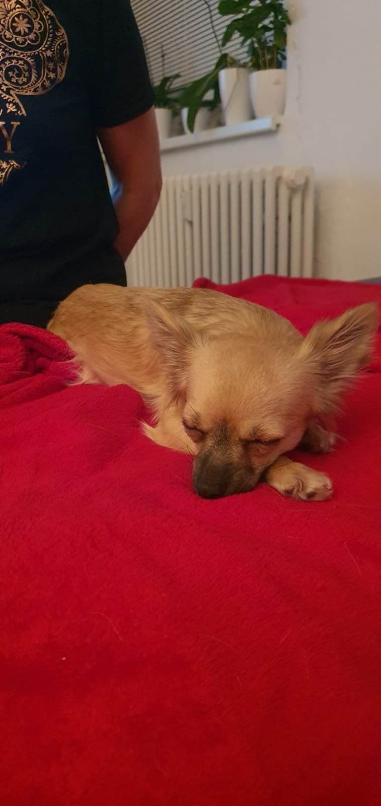 Sendynka je malá roztomilá beruška, rok stará. Váží čtyři kila. Je to velmi milá a čistotná holčička. Musíme na ni prozradit, že vůbec neštěká. Nevadí ji žádná manipulace, rychle si zvyká na nového pána (možná až trochu závisláček). Reaguje na přivolání, umí povel sedni, čekej. Ráda si hraje. Hledáme pro ni vymazlený domov, jako je ona sama.