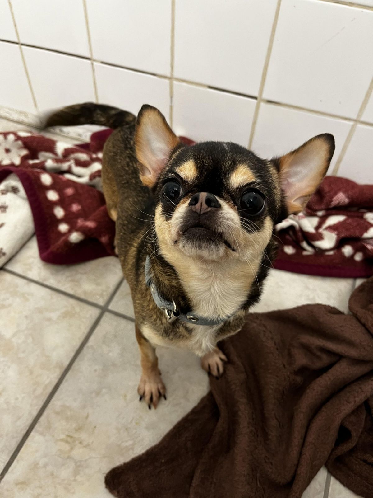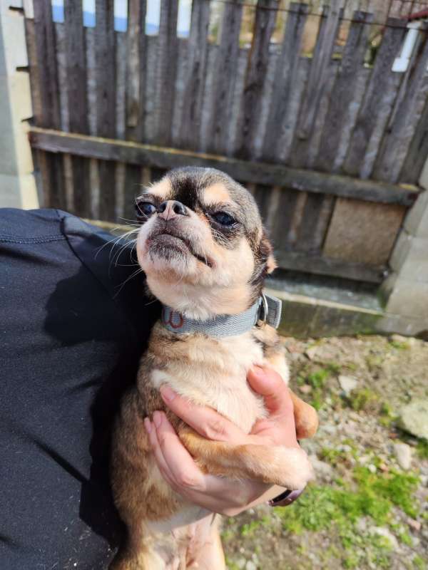 Kytička je drobná čivava přijata od majitele. Kupodivu je velmi komunikativní, mazlivá, veselá a vhodná i k rozumným vychovaným dětem. Váží něco přes 3kg a jsou jí 2 roky. Kytička je čistotná a hledá ideální domov, který jí pečlivě vybereme. Ráda si lehá na záda a nechá se drbat po bříšku. S ostatními pejsky vychází, pokud se jí podřídí, umí si je srovnat a hlídá si před nimi jídlo. Bude spokojená spíš jako jedináček, protože ona k životu potřebuje hlavně lidi.