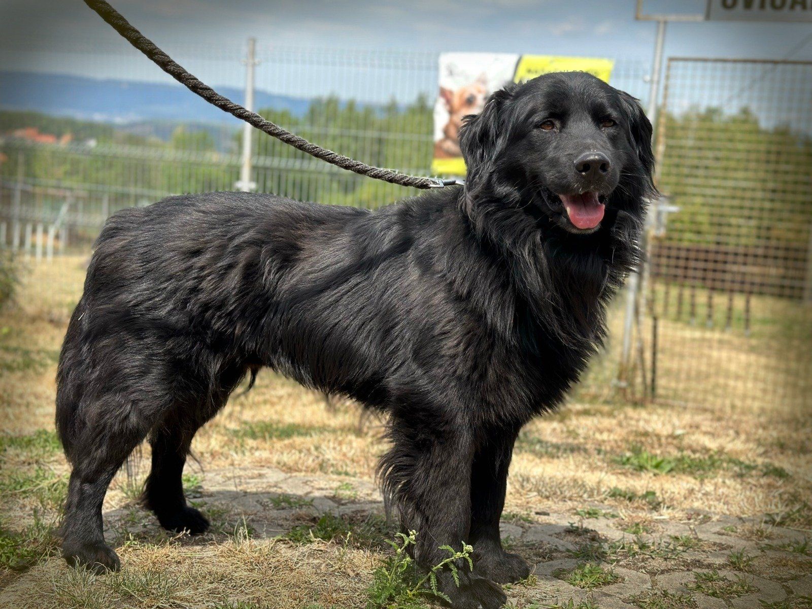 Bruna odložila vlastní rodina v jeho sedmi letech. Majitelka už nebyla schopna se o něj déle postarat . Je to nejspíš kříženec hovawarta a labradora. Je to nádherný zdravý pes, co byl zvyklý na venkovní pobyt, za nás bychom mu raději našli domov s přístupem dovnitř, ale záleží na podmínkách konkrétního umístění (kontaktu s člověkem při případném pobytu venku, kvality a zateplení boudy atd.). Váží třicet tři kilo a je mu sedm let. Miluje procházky (klidně delší), výlety, má rád vodu a plavání, je zvyklý na jízdu autem a docela si ji užívá. Byl zvyklý i na ostatní psy, je snášenlivý, vůbec si jich nevšímá, ale samozřejmě je potřeba s budoucím bráškou či ségrou vyzkoušet. Umí základní povely a bývalá panička říkala, že venku chodil i na volno a je moc šikovný. U nás chodí krásně na vodítku. Bojí se bouřky. Jedinou jeho nevýhodou je, že si hlídá jídlo, v tu chvíli by se klidně ohnal. Je opatrnější i na manipulaci, proto ho raději nedoporučujeme k dětem, i když prý v domově byl na známé děti zvyklý, očuchal si je a nevšímal si jich. Kočky bohužel nesnáší. Moc by si zasloužil najít krásný domov, v útulku je mu smutno, nechápe, proč se po 7mi letech ocitl v kotci, když předtím pobíhal vesele s rodinou po celé zahradě. Bruno si po dlouhém pobytu v útulku začal vybírat lidi, na které je hodný a na které ne, spoustu zájemců už odradil tím, že na ně zavrčel. Není divu, je zrazený a smutný a nemá rád, když se mu cizí lidé hned vrhají kolem krku. Hledáme pro něj trpělivou rodinu, co bude respektovat jeho osobnost.