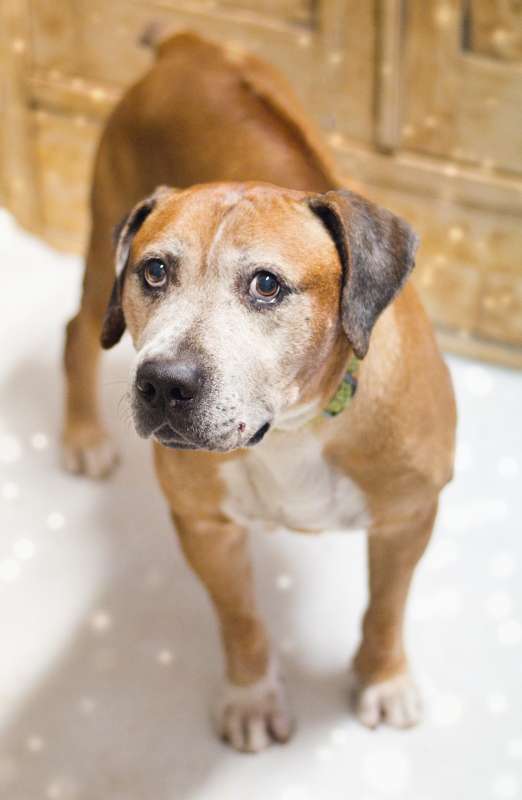Ahoj, mé jméno je Tiberius. Jsem pořádný kus psího štěstí (50kg). Tety v útulku říkají, že mám uhrančivý pohled a některé psí holky si to též myslí :-) Je mi už deset let, ale nebojte se, síly mám stále dost. Můj věk mi neubírá na tom, že jsem velmi laskavý a přátelský. On nikdo nečeká, že takový kus psa může být až takový miláček, ale já jsem! Rád se procházím na útulkový zahradě a když si tam se mnou hrají i tety, řeknu Vám, to je legrace :-) Vím, že potřebuji trochu shodit nějaké to kilčo, ale nebojte, to půjde :-) Musím na sebe ještě prozradit, že jsem velmi čistotný, umím základní povely, snesu se psími holkami i s psími kluky, i když nějaké mladé přemotivované blázny by bylo potřeba samozřejmě vyzkoušet, ti mi občas lezou na nervy. Tety mi daly do kotce lehátko s dekou a tam se tak rád rozplácnu a odpočívám, ale co Vám budu povídat…..nějaký ten gaučík, pohlazení k tomu a pravidelné kratší procházky by mi tak udělaly dobře na duši. Jsou tu na mě všichni hodní, ale domov mi tak chybí. Jsem tu smutný, jelikož takto na „stará“ kolena se dostat do útulku není opravdu nic příjemného.