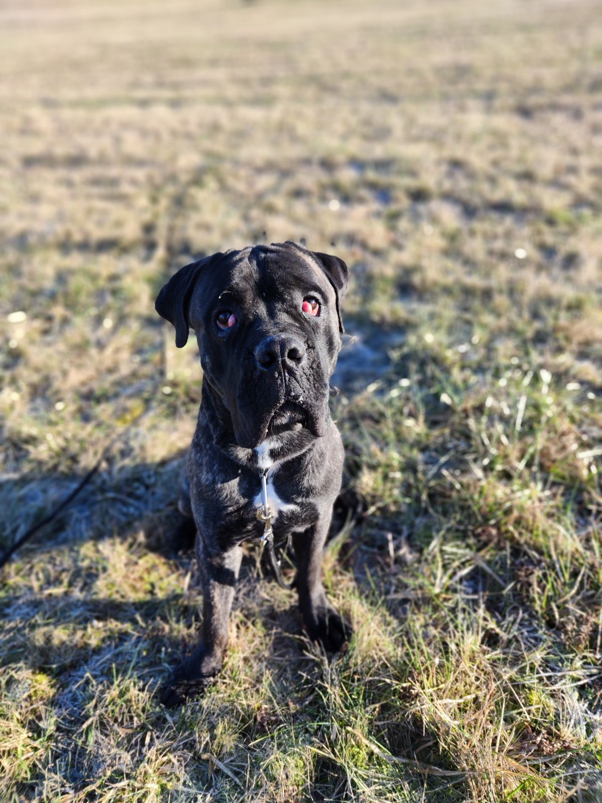 Bailey byl velké mimino, který se bál vlastního stínu. Po půl roce v útulku je konečně připraven najít novou rodinu. Hledá trpělivého vyrovaného majitele, co žije ideálně v klidnějším prostředí. Vyrostl z něj nádherný kříženec cane corso. Na první pohled budí hrůzu, ale on se jenom hodně bojí a když má možnost úniku, radši se schová. Bohužel za to nemůže. Jeho původní majitelé si ho přebírali jako pětitýdenní štěně někde na benzínové pumpě, někdy před Silvestrem, kdy už kolem bouchaly petardy. Prostě všechno špatně... Drobeček ve svém strachu rostl, bydlel v bytě, kde se cítil bezpečně, byl zvyklý i na děti, ale každé venčení byla sázka o to, čeho se má leknout dřív nebo víc. Nakonec už byl problém ho udržet na vodítku, psy vyštěkával na dálku, vůbec s nimi nebyl socializovaný, cizí lidi taky pro jistotu vyštěkal. Po přijetí do útulku to byla hromádka neštěstí. Ale s trpělivostí a láskou a postupnou socializací z něj roste úžasný pes, co vyhlíží novou rodinu! Baileymu trvá chvíli, než si zvykne na nové lidi, prostředí, zvuky, psy. Známé tváře miluje, pusinkuje, poslouchá a je to takové malé štěně ve velkém těle. Fenky už krásně snese, s pejsky se musí seznámit, ale po chvíli bývá taky v pohodě. Začal si užívat procházky, výlety, už se nebojí každého šustnutí, zvládá chodit krásně na prověšeném vodítku. Potřebuje k sobě vyrovnaného silného člověka, o kterého by se tenhle obřík mohl opřít, věřit mu a následovat ho. Zvládl u nás operaci očí (foto ještě před operací) a bude se rád seznamovat s novou rodinou. Uvítal by raději bydlení v domku se zahrádkou, ale byl zvyklý na bydlení v bytě, tedy záleží na možnostech nové rodiny. Bailey má celý život před sebou, je mu teprve rok a půl a čeká, do koho se bude moci zamilovat.