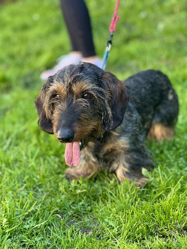 Raddle je zatím trochu "zaražený" a nijak výrazně se neprojevuje. Možná je jen smutný, že se dostal do útulku. Raddlemu je zhruba 7 let. K lidem se chová hezky, i když to není typ psa, co cizímu člověku hned skočí do náruče. Určitě bude bezpečně poznávat "svoje členy smečky" a těm bude věrný a bude jim projevovat svoji lásku a ostatní lidi bude respektovat , ale nemusí si jich moc všímat. Zkoušeli jsme ho skamarádit s pejskem, nereagoval vůbec agresivně, ale ani se nekamarádil. Má takový svůj svět. Správný jezevčík, nosánek zaražený k zemi a čmuchá :-) Je potřeba s případným psím bráškou či ségrou vyzkoušet, ale věříme, že problém nebude.