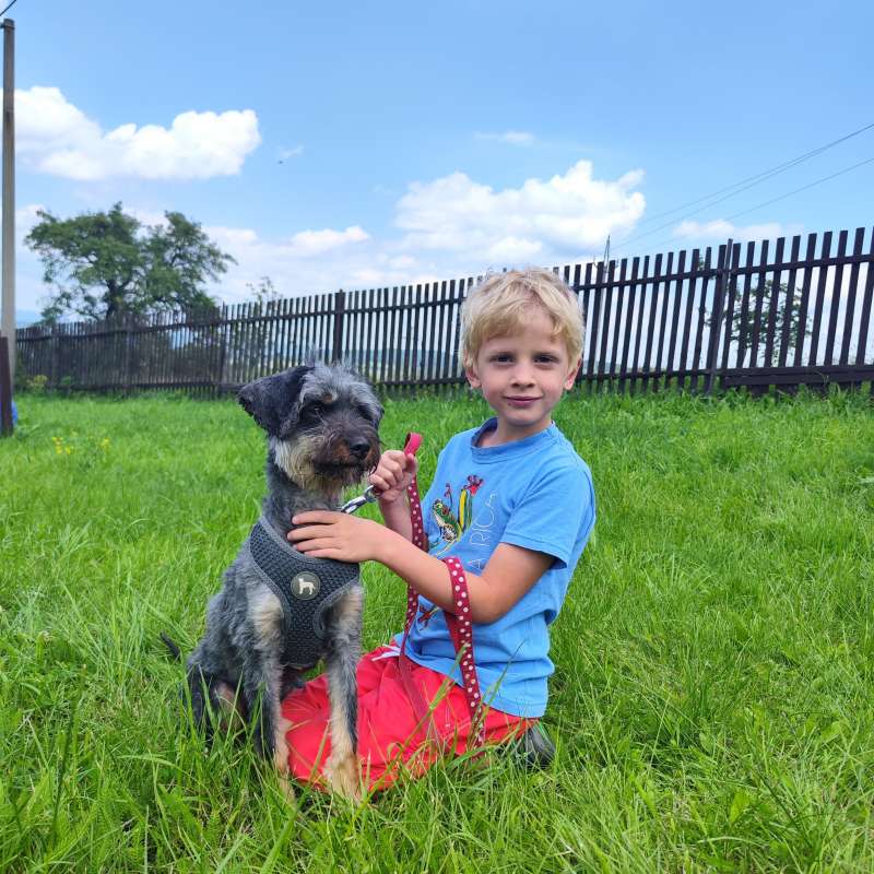 Ťapinka byla odebrána pomocí KVS, byla podvyživená a měla zdredovatělou srst, ale v útulku se dala brzy do pořádku, je to aktivní teriérka s pořádně tuhým kořenem, co si chce plnými doušky užívat života. Ťapinka je hodná, stoprocentně přátelská k lidem.. Je to malé torpédo, musí všechno vidět, všude být první, všechno stihnout a nic jí neunikne. Je vhodná i k dětem, je velmi hodná. Nejvíc ji zajímá cokoliv, co se kde šustne. Kočičky nemá ráda a chtěla by je ulovit, stejně jako ptáčky nebo myšky. Bude potřebovat péči o srst. Ťapinka je veselá a trochu uštěkaná jako správná ženská, když potřebuje něco nutně sdělit:). Je jí zhruba 6 let a váží 6,2 kg. Je to aktivní střapatá malá slečna, velmi pohyblivá, ráda běhá, přitom už to není štěně, je stoprocentně čistotná. Fenečka hledá domov, kde se nebude nudit a kde využije svůj temperament na společné aktivity. Ťapinka není ideálním psem pro starší lidi, je opravdu aktivní a do "klidného psa" má hodně daleko. Uvítá mladou rodinu, kde bude mít dostatek pohybu.