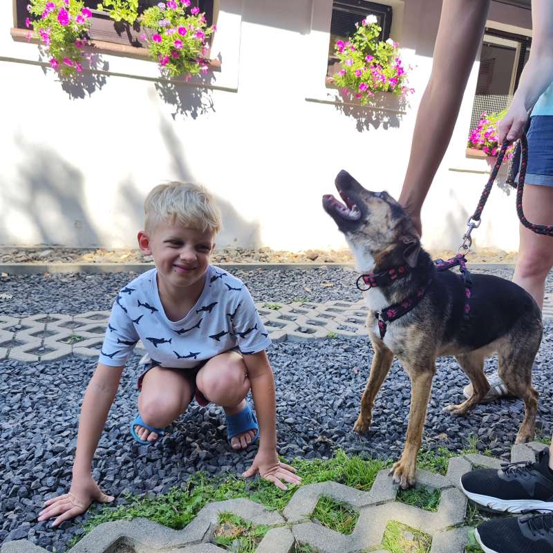 Iness je roční desetikiová fenka, aktivní sportovkyně. Je tak nadšená, že může působit uštěkaně , ale jakmile ji vytáhnete ven, je jednoduše úžasná! Má v sobě nekonečno lásky a energie, jen neví, jak s ní naložit. Čeká na svého průvodce světem, který před příchodem do útulku moc nepoznala. Teď už ale umí nádherně chodit na vodítku, běhat na postroji, je poslušná a zná základní povely. Je u nás nepochopitelně dlouho, čeká na tu svojí spřízněnou duši. Potřebuje někoho, kdo jí dodá jistotu, sebevědomí, obejme ji láskou a naučí, jak vybít energii a zaměstnat hlavu. Iness je fenka, která potřebuje hodně pohybu. Odmění se ale úžasnými zážitky a hromadou lásky. Za trpělivost a práci získáte úžasnou chytrou fenečku, která udělá, co vám na očích uvidí. Iness se velmi rychle fixuje na své lidi. Hledá někoho zkušenějšího, kdo jí bude oporou, ale zároveň v ní bude budovat správnou míru sebevědomí, aby si věřila a nebyla jen závislá na svých lidech. Svou energii a chytrou hlavičku by Iness mohla uplatnit při nějakém psím sportu (např. agility). Vidíme v ní výjimečnou fenečku, která potřebuje pomoci rozkvést. Není to žádný gaučák, je to opravdu sportovkyně, chytrá, houževnatá, učenlivá a hlavně nadšená. Bohužel útulek pro ni není to nejlepší místo. Je zvyklá na ostatní psy, funguje i ve větší smečce, i když z dálky je dokáže pěkně vyštěkat a chvílemi se projevuje trochu žárlivě. Potřebuje víc, mnohem víc. Iness je velmi chytrá, drobná fenka, co váží jen 10kg.