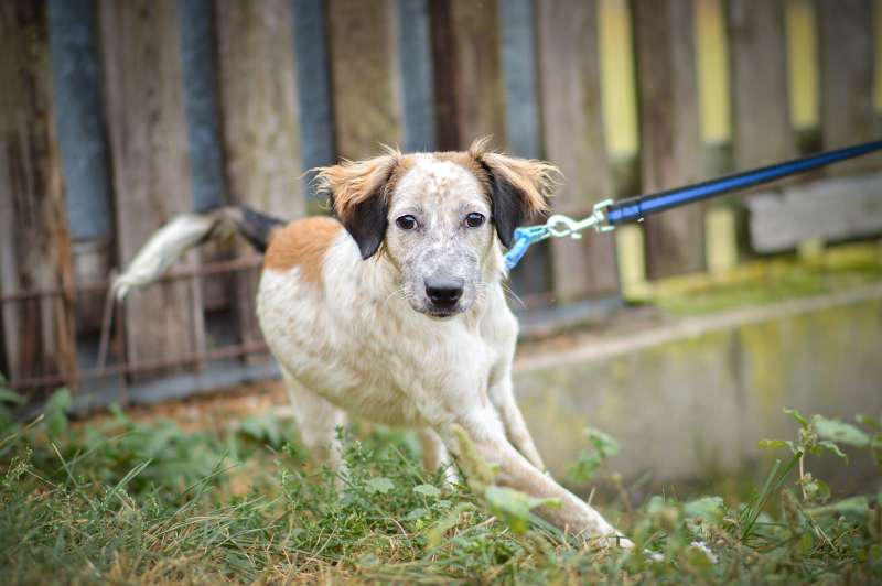 Barva: bílá s hnědým vločkováním a černým čumákem