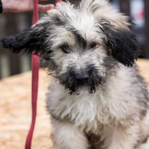 Huňatá přátelská fenka, úžasně snášenlivá, zhruba 3-4letá