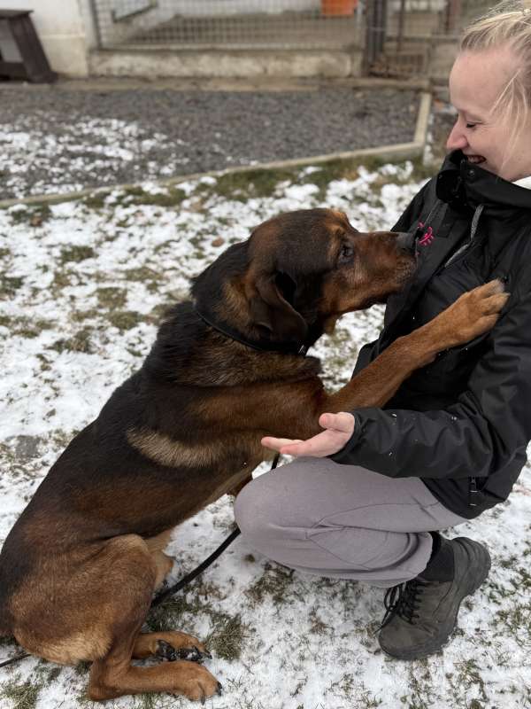 Ahoj… jmenuju se Torin. Nejsem žádný malý prcek – mám kolem 35 kg a už jsem takový psí dědeček, je mi asi 10 let. Jednou jsem se ztratil a nikdo se pro mě bohužel nikdy nevrátil. Teď čekám… a pořád doufám, že ten správný člověk teprve přijde. Mám za sebou všechna veterinární vyšetření a ano, pár zdravotních neduhů si s sebou nesu. Ale i tak pořád věřím, že mě čekají lepší zítřky a teplý pelíšek, kde už budu právoplatný člen rodiny. Jsem hodný, mazlivý kluk, i když se občas ozve moje „nerudná dědečkovská“ povaha. Potřebuju jen čas, klid a toleranci. Když mi dáš šanci, otevřu ti svoje obrovské psí srdce. S ostatními pejsky by se to muselo vyzkoušet individuálně. Jsem ale čistotný, nic neničím a mám už rozum – přece jen, něco jsem si v životě už prožil. Rád si ještě užiju kratší procházky, aby mi vydržely svaly na zadních nožkách co nejdéle. Na dlouhé túry už to není, ale na krásný a klidný důchod bych byl ideální parťák. Prosím… možná nejsem dokonalý, ale pokud mi dáš domov, budu ti vděčný do posledního zavrtění ocásku. Už jen čekám na malý zázrak. Už si pro mě jedeš?