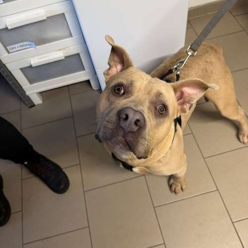 Ahoj, já jsem Floky a hledám svůj domov. Je mi rok a půl a jsem kříženec bull plemene. Jsem ještě takový puberťák – plný energie, radosti a trošku blázen. Vaši pozornost bych nejraději měl jen pro sebe, protože lidi prostě miluju a být s nimi je pro mě to nejvíc. Popravdě… zatím jsem neměl úplně lehký život, ale pořád věřím, že mě někde čeká moje lepší zítřky. Jsem čistotný kluk, doma nic neničím a když mi dáte šanci, budu skoro bezproblémový parťák. S pejsky i kočičkami vycházím, ale víte jak – osobní seznámení je základ. Co ale miluju bez výjimky, jsou lidi! Mazlení, pozornost a společný čas, to je moje. Když vás slyším nebo vidím a nemůžu být s vámi, umím to dát pořádně najevo. Je pravda, že toho ještě moc neumím, ale strašně rád se budu učit. Stačí mi někdo, kdo se mi bude věnovat a ukáže mi, jak být tím nejlepším parťákem. Miluju pohyb, procházky, výlety a všechno, co zaměstná moje nohy i hlavičku. Moc si přeju teplý pelíšek, plnou misku a hlavně člověka, který mi dá čas, lásku a pozornost. Nenechte mě prosím čekat moc dlouho… slibuju, že vám budu dělat radost každý den.