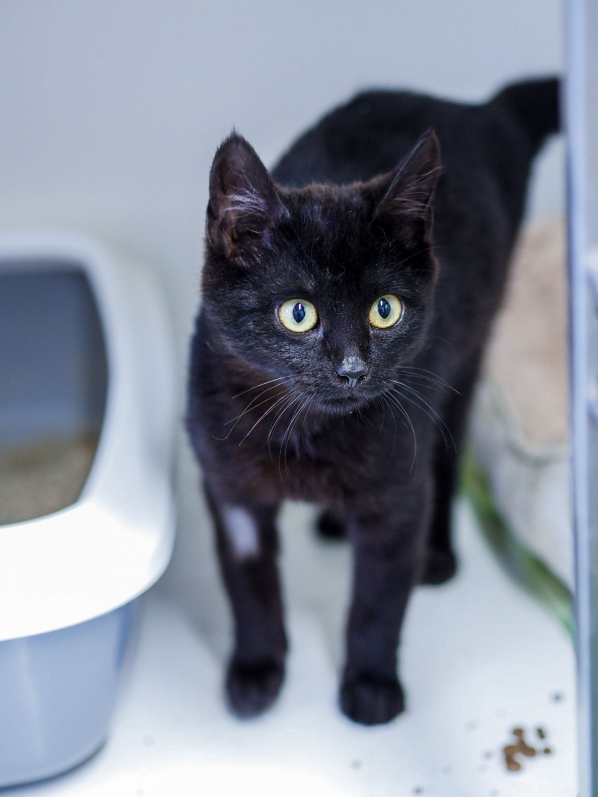 Chappie je zhruba osmiměsíční drobný kocourek nalezený na silnici ve špatném stavu, zřejmě sražený autem. První dny strávil na klinice, protože musel podstoupit operaci fraktury zadní končetiny. Operace naštěstí proběhla v pořádku, Chappie nožičku hezky používá a opět chodí jako dřív. Teď už mu ke štěstí schází jen lidský parťák, který si ho zamiluje. A víte co? Chappieho nejde nemilovat! Je to kocourek s tak vřelou povahou, že za pár dnů zvládl oslnit všechny zaměstance veterinární kliniky. A nás tady teda taky. Samou láskou s vždy rozvrní, sotva se k němu trochu přiblížíte. Okamžitě se každému dere pod ruce, dožaduje se pozornosti a mazlení. Není nic sladšího než tahle malá černá chlupatá kulička, která vás chce pusinkovat a vy mu na očích vidíte, že to s tou láskou myslí opravdu upřímně!