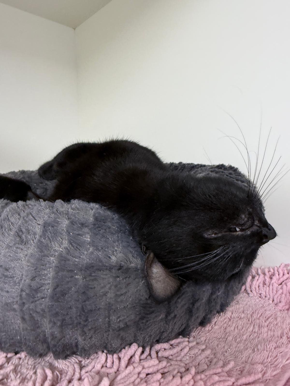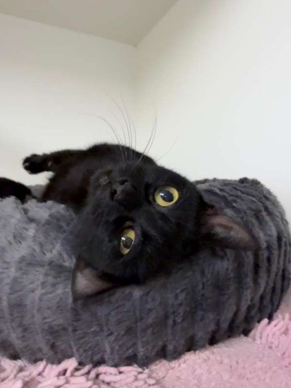 Jsem asi rok stará černá kočičí dáma – elegantní, chytrá a srdcem pořád trochu kotě. Našli mě venku, kde jsem se o sebe musela postarat sama, ale i tak jsem neztratila svou důvěru v lidi. Jsem zdravá a právě se zotavuju po kastraci, takže se pomalu těším na novou životní kapitolu.