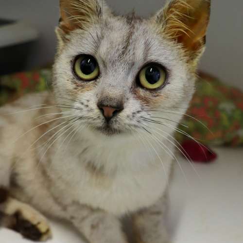 Mladá kočička, zachráněná před smrtí