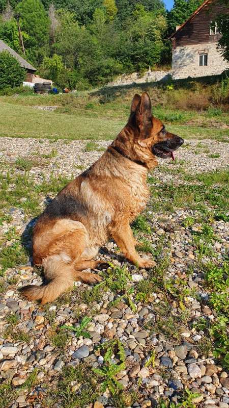 Arina je úchvatně krásná fenka německého ovčáka bez PP. Na podzim jí budou 4 roky, váží 34kg, zvládá základní povely a udělá co svému člověku na očích vidí. Přijali jsme ji po zemřelém majiteli, byla zvyklá žít uvnitř po boku svého pána, v bytě se chová naprosto vzorně, nic neničí a neštěká. Pravděpodobně měla málo pohybu, majitel už na ni nestačil a měla málo osvalené zadní nohy, teď už postupně trénuje a zlepšuje se. Arina má ráda všechny lidi i děti, je trochu opatrná a velmi citlivá, ale stoprocentně přátelská. Socializaci s ostatními pejsky bohužel nezná a doporučujeme ji raději jako jedináčka, zvláště přes plot a na vodítku je to velká hrdinka. Na volno jí odvaha dochází a na případného spolubydlícího si zvykne, ve smečce ostatní pejsky ignoruje. Do adopce odejde očkovaná, čipovaná, odčervená, odblešená, na základě podpisu adopční smlouvy a uhrazení finančního příspěvku , s podmínkou kastrace. tel: 736 769 601