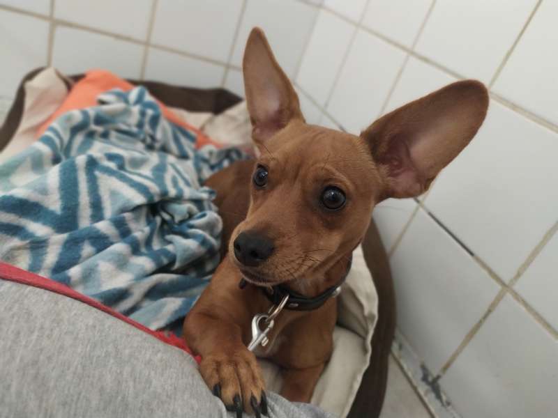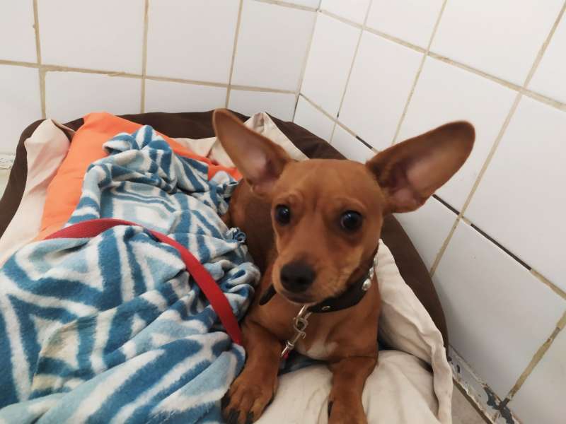 Ruby je malá fenka s korálkovýma očima a netopýříma ušima. Zprvu je nedůvěřivá, možná jí v minulosti někdo ubližoval. Po seznámení začne člověku věřit, je hravá a velmi chytrá. Věříme, že svého majitele bude milovat. Je drobounká, váží pouze 6kg, je jí rok, maximálně 2. Vhodnost k dětem je potřeba vyzkoušet, určitě má za sebou špatné zkušenosti a strach z neznámého rychlého pohybu ji stále provází, proto v tuhle chvíli nedoporučujeme k úplně malým dětem. Ruby odejde do domova čipovaná, očkovaná, odčervená, odblešená, na základě podpisu adopční smlouvy a uhrazení finančního příspěvku, s podmínkou kastrace. Tel: 736 769 601