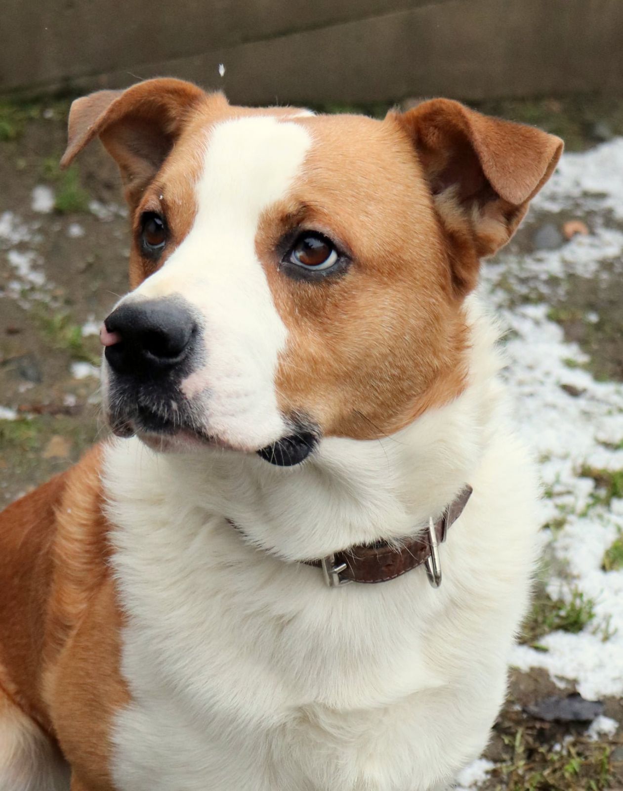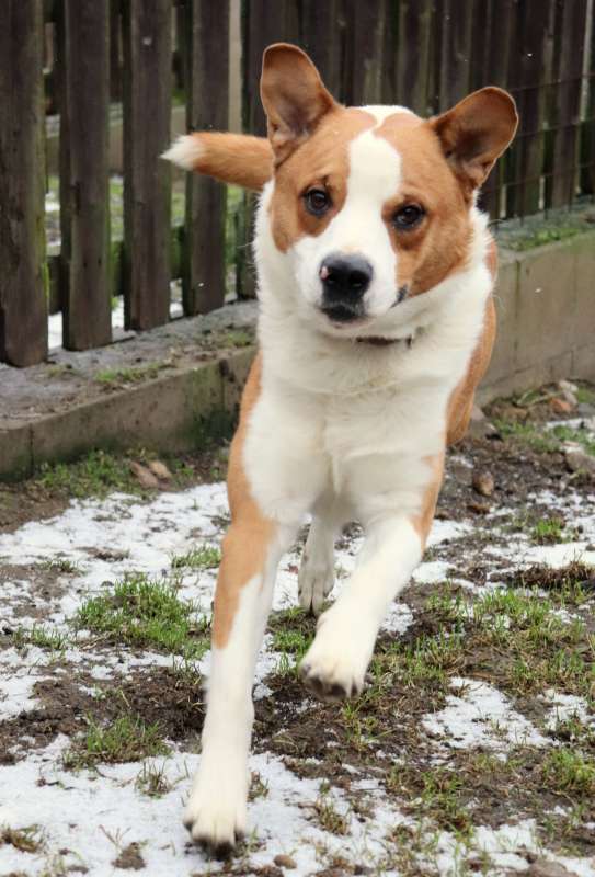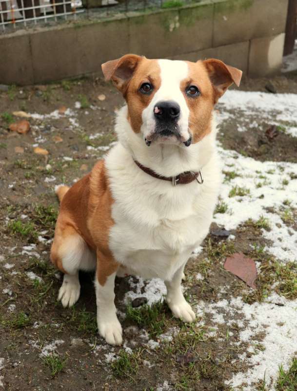 KING aneb energie sbalená na cesty, výzva pro sportovce a siláky . Je to velmi mladý vzhledově originální kříženec, váží 25kg, je přátelský, kontaktní a pořádně temperamentní. Je to takový veselý tank, umí dávat pusinky, ač trochu neohrabaně, skáče, snaží se chytat vodítko, kapuci, prostě cokoliv, s čím by mohla být sranda. Je ho všude plno, potřebuje pohyb, aktivitu, vyžití pro tělo i hlavu a správné vedení. Potřebuje majitele, co ho dokáže vyklidnit, unavit a vymazlit. Má pokaždé takovou radost, že se mu někdo věnuje, že jakýkoliv úkon typu nasazení obojku vyžaduje hbitost, sílu a postřeh majitele, protože King se samým štěstím vrtí tělem i duší. K dětem by mohl jít pouze odrostlejším, má velkou sílu a je to hromotluk, malé dítě by porazil. Rozhodně hledá aktivní rodinu, která ho zvládne fyzicky utahat, a bude se s ním věnovat nějakému sportu, je velmi chytrý a vynalézavý. King je čistotný, vhodný do bytu i do domu s přístupem ven. Vrátil se nám z adopce po roce, prý se jednorázově ohnal po dítěti, které přijelo na prázdniny :-(. King byl doma stoprocentně čistotný, zvyklý na jiné pejsky i kočičky, zvyklý i na děti. Do adopce odejde kastrovaný, očkovaný, odčervený, odblešený, čipovaný, oproti podpisu adopční smlouvy a uhrazení finančního příspěvku. Požadujeme minimálně 2 návštěvy útulku. Kontakt 736 769 601