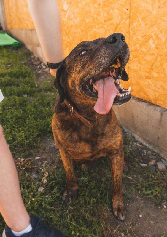 Bramborák - to jméno se k němu hodí :-) Je to malinko ignorant. Ideální parťák pro někoho, kdo hledá nenáročného velkého psa, hodného, k dětem jako člena rodiny, pro němž nebude chtít, aby skákal přes překážky, ale aby prostě byl, sdílel domácnost, mazlil se a užíval si role rodinného mazlíčka. Bramborák je asi čtyřletý pes, spíš klidnější povahy, žádné aktivní trdlo. Je naprosto bezproblémový na manipulaci i ošetřování. Bohužel při delším pobytu v útulku se u něj projevila separační úzkost, Bramborák je v útulku úplně zoufalý, demoluje a je vystresovaný, u toho si sám ubližuje. Umí zdolat -rozkousat i plot. Po dobu, co byl v adopci, uměl zůstat dám doma úplně v klidu i několik hodin a jen spal. Při přesunu do nového domova se ale může jeho separační úzkost opět provejit, než si zvykne. Obecně je to zlato, vhodný i k dětem, jen bude potřebovat minimálně ze začátku neustálou přítomnost člověka. Velký dobrák Bramborák je opravdu velký, váží 46kg a když se rozhodne, že někam jde, tak jde a těžko se mu vysvětluje opak. Zapře se váhou svého těla a nechápavě vyděšeně kouká, co po něm chcete. Nikdy na nás nezavrčel a výborně funguje na pochoutky. Je čistotný, spokojený v bytě, i i v domě s výběhem na svou zahrádku. Bohužel je to útěkář,je potřeba mít dobře zabezpečený pozemek, dokáže si udělat díru v plotě. Ideální by byl asi jako jedináček, i když s pejsky se snese. Vrátil se nám z adopce jednou kvůli útěkům a odruhé kvůli změně rodinné situace, za kterou nemohl...Čeká na tu nejlepší rodinu! Do adopce odejde kastrovaný, očkovaný, čipovaný, odčervený, odblešený, na základě podpisu adopční smlouvy a uhrazení příspěvku na péči. Kontakt 736 769 601