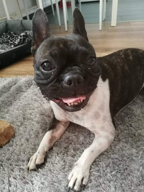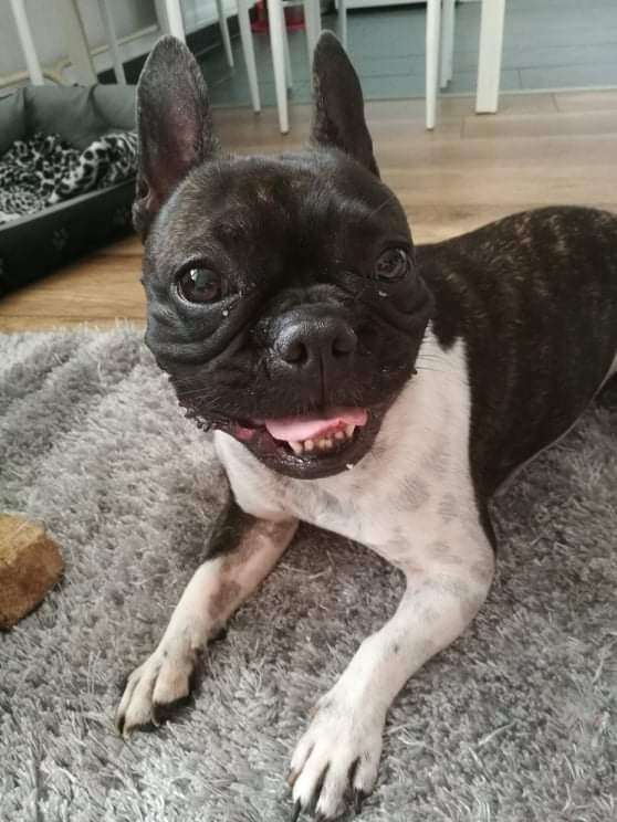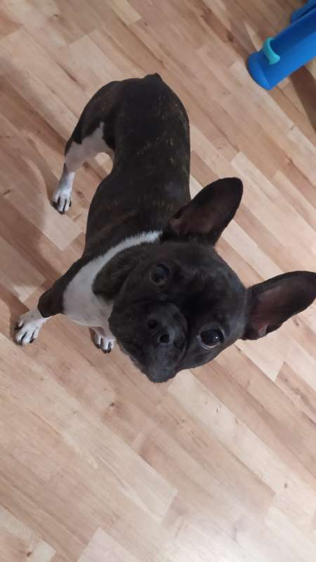 Miley je pětiletá fenka francouzského buldočka menšího vzrůstu. Chová se jako štěně vzhledem i povahou , miluje všechny hodné lidi, kteří ji pohladí a budou se ji maximálně věnovat. Venku zvládne turistický výšlap, ale rozhodně ji nevadí celý den proválet na gauči nebo v posteli pod dekou. Umí základní povely sedni, lehni, nesmíš, zůstaň. Její dobré vlastnosti jsou věrnost a oddanost, miluje mazlení a sezení na klíně, potřebuje domov, kde bude milovaná a kde bude moct být často s člověkem. Zvládne to i několik hodin doma sama, ale nesmí být v dosahu věci, které může rozkousat (knihy, boty, toaletní papír, noviny atp.). Sama doma je zvyklá na chodbě kde má pelíšek a nemá přístup do ostatních místností, úplně nejlepší by pro ni byl domov, kde může být neustále s někým, rozhodně by mohla chodit s páníčkem i do práce. Venku umí chodit na vodítku. Její záporné vlastnosti jsou nesnášenlivost narozených dětí a batolat. Za to se školáky si skvěle rozumí a hraje. Není vhodná ani do domova, kde je kočka (zvykla by si, ale první týdny by ji prohnala) nebo dominantní pes. Venku se rozbíhá za vším co dělá rámus a má kola (cyklisti, skateboard, traktor, sekačka, koloběžka). Miley je od malička na BARFu, žádnou alergii dosud neprojevila. Ve třech měsících byla na operaci oka s dermoidem, od té doby neměla s okem žádný problém a její zdravotní stav je dodnes též bez jediného problému. Miley se nachází b dočasné péči u původních majitelů, kteří se rozhodli ji hledat nový domov, protože bohužel nesnáší nově narozené dítě. Pro adopci je potřeba se přijet seznámit do dočasné péče a následně absolvovat pohovor v útulku. Do adopce odejde kastrovaná, očkovaná, čipovaná, odčervená, odblešená, na základě podpisu adopční smlouvy a uhrazení příspěvku na péči. Kontakt 736 769 601
