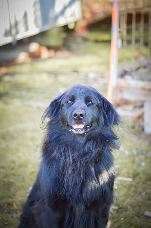 Bruna odložila vlastní rodina v jeho sedmi letech. Majitelka už nebyla schopna se o něj déle postarat . Je to nejspíš kříženec hovawarta a labradora. Je to nádherný zdravý pes, co byl zvyklý na venkovní pobyt, za nás bychom mu raději našli domov s přístupem dovnitř, ale záleží na podmínkách konkrétního umístění (kontaktu s člověkem při případném pobytu venku, kvality a zateplení boudy atd.). Váží třicet tři kilo a je mu sedm let. Miluje procházky (klidně delší), výlety, má rád vodu a plavání, je zvyklý na jízdu autem a docela si ji užívá. Byl zvyklý i na ostatní psy, je snášenlivý, vůbec si jich nevšímá, ale samozřejmě je potřeba s budoucím bráškou či ségrou vyzkoušet. Umí základní povely a bývalá panička říkala, že venku chodil i na volno a je moc šikovný. U nás chodí krásně na vodítku. Bojí se bouřky. Jedinou jeho nevýhodou je, že si hlídá jídlo, v tu chvíli by se klidně ohnal. Je opatrnější i na manipulaci, proto ho raději nedoporučujeme k dětem, i když prý v domově byl na známé děti zvyklý, očuchal si je a nevšímal si jich. Kočky bohužel nesnáší. Moc by si zasloužil najít krásný domov, v útulku je mu smutno, nechápe, proč se po 7mi letech ocitl v kotci, když předtím pobíhal vesele s rodinou po celé zahradě. Bruno si po dlouhém pobytu v útulku začal vybírat lidi, na které je hodný a na které ne, spoustu zájemců už odradil tím, že na ně zavrčel. Není divu, je zrazený a smutný a nemá rád, když se mu cizí lidé hned vrhají kolem krku. Hledáme pro něj trpělivou rodinu, co bude respektovat jeho osobnost.