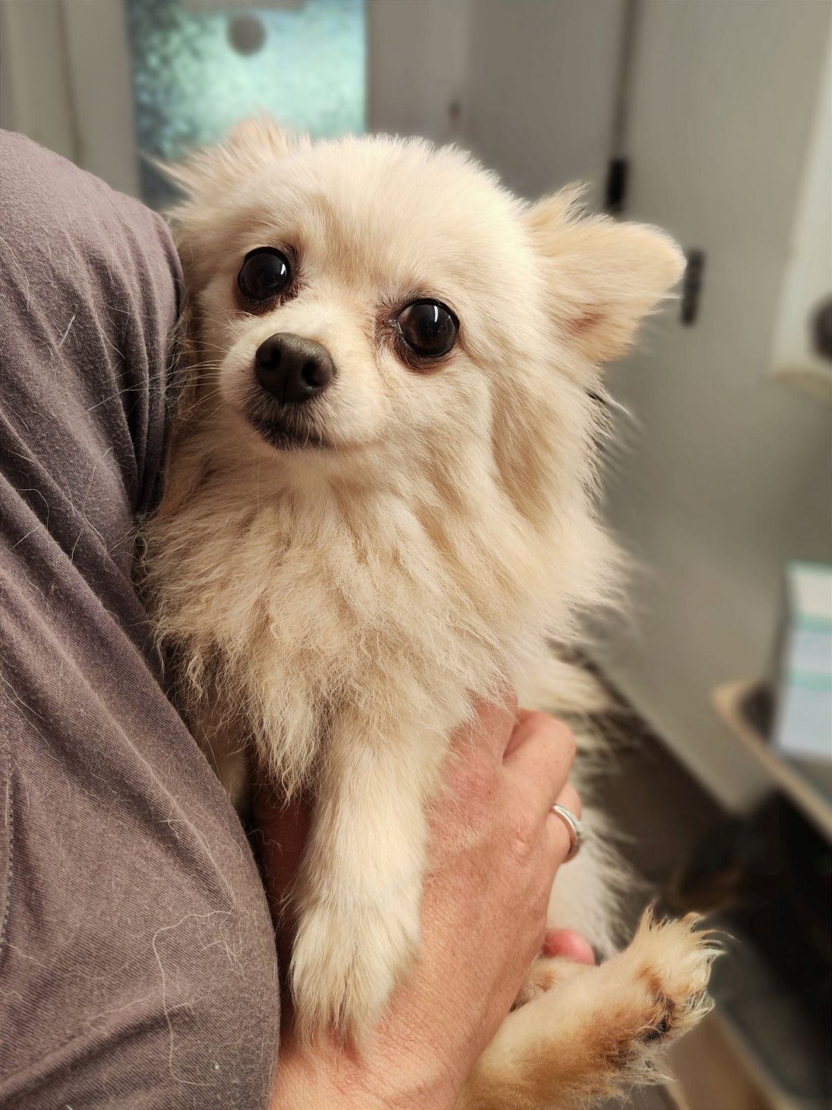 Finlandia je takový drobeček váží jen 2,7 kg. Má typickou srst pro špice, hustou s podsadou, přitom hebounkou na dotek. Když bude opečovávaná, určitě bude krásná sněžně bílá a načechraná. Finlandia je sice malinko opatrná při prvním kontaktu, ale po chvíli Vás vítá a ráda se mazlí. Je zvědavá, kontaktní, velmi komunikativní. Vodítko zatím moc nezná, ale chodí za člověkem na vodítku krásně, dokud nezjistí, že ji chcete někam táhnout. Určitě se to brzy naučí, je velmi šikovná a už překonala počáteční strach z lidí. Je to typicky dlouhověké plemeno. Nyní její věk odhadujeme na 6 let. Je velmi milá, jemná, vděčná a tichá. Je vhodná i ke klidnějším dětem, ale lépe by jí bylo v stabilnějším prostředí. Do adopce odchází kastrovaná, s ošetřenými zoubky, očkovaná, čipovaná, odčervená, odblešená, na základě podpisu adopční smlouvy a uhrazení příspěvku na péči. Zájemce prosíme o vyplnění adopčního dotazníku. https://forms.gle/XhktirLMoEPK1g1A6