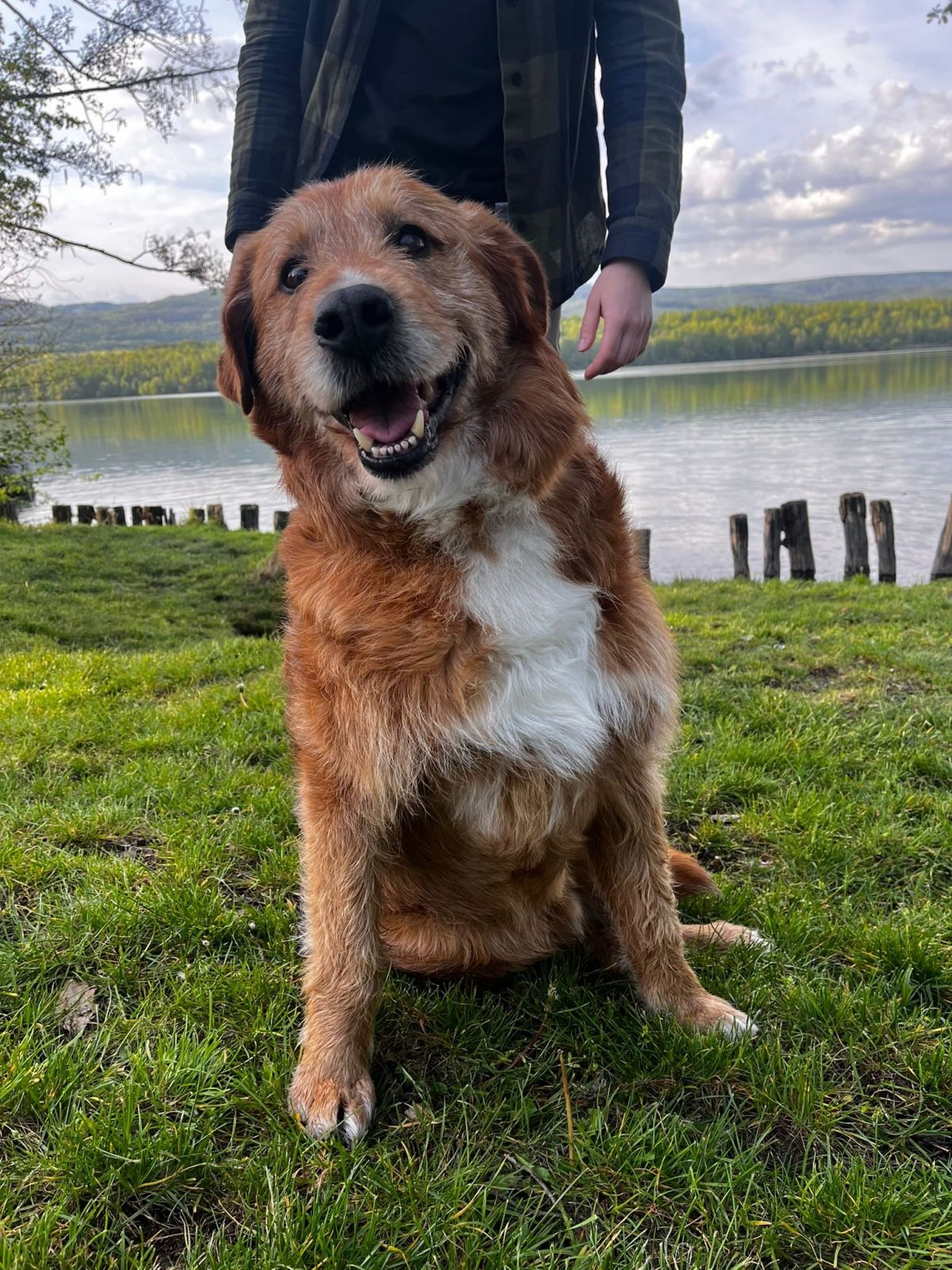 Benovi zemřel páníček. Je to nádherný větší pes, naprostý miláček ke všem lidem, vítá i úplně cizí návštěvníky. Je zvyklý na ostatní psy i další zvířata, žil se slepicemi na dvorku, ale teď si zvykl na spaní v bytě a už by se mu do boudy nechtělo. Je stoprocentně čistotný, Vydrží i 8 hodin doma v klidu ležet a spát, když jste v práci. Jí už jen granule, po konzervách má průjem. Je to velký mazel i k lidem vždycky přijde a sedne si přímo na nohy a chce drbat, když jde někdo okolo a leží ukáže břicho a natahuje pacinku, je roztomilý. Umí jezdit v autě klidně. Po venčení si nechá utřít packy v pohodě. Momentálně se nachází v dočasné péči, kde má doma i psího parťáka. Ben váží 35 kg a je mu 10 let, ale má pořád chuť do života a rozhodně se necítí být starým psem.Tel: 736 769 601