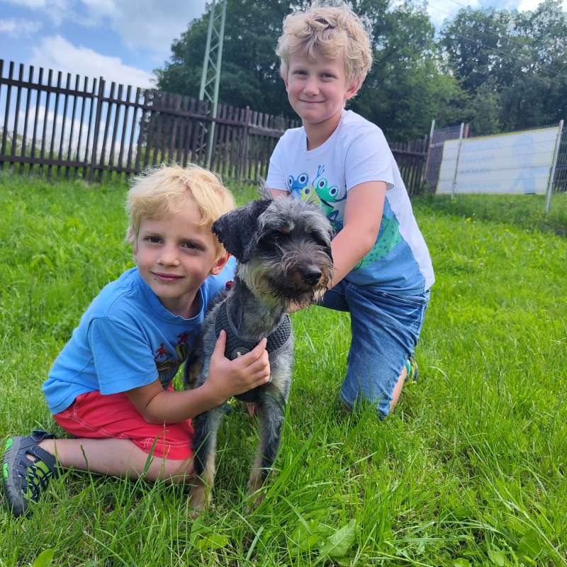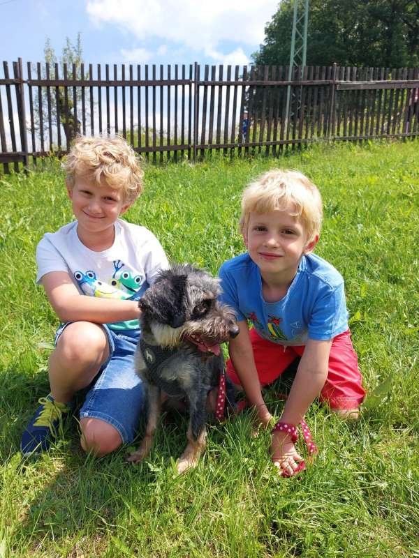 Ťapinka byla odebrána pomocí KVS, byla podvyživená a měla zdredovatělou srst, ale v útulku se dala brzy do pořádku, je to aktivní teriérka s pořádně tuhým kořenem, co si chce plnými doušky užívat života. Ťapinka je hodná, stoprocentně přátelská k lidem.. Je to malé torpédo, musí všechno vidět, všude být první, všechno stihnout a nic jí neunikne. Je vhodná i k dětem, je velmi hodná. Nejvíc ji zajímá cokoliv, co se kde šustne. Kočičky nemá ráda a chtěla by je ulovit, stejně jako ptáčky nebo myšky. Bude potřebovat péči o srst. Ťapinka je veselá a trochu uštěkaná jako správná ženská, když potřebuje něco nutně sdělit:). Je jí zhruba 6 let a váží 6,2 kg. Je to aktivní střapatá malá slečna, velmi pohyblivá, ráda běhá, přitom už to není štěně, je stoprocentně čistotná. Fenečka hledá domov, kde se nebude nudit a kde využije svůj temperament na společné aktivity. Ťapinka není ideálním psem pro starší lidi, je opravdu aktivní a do "klidného psa" má hodně daleko. Uvítá mladou rodinu, kde bude mít dostatek pohybu.