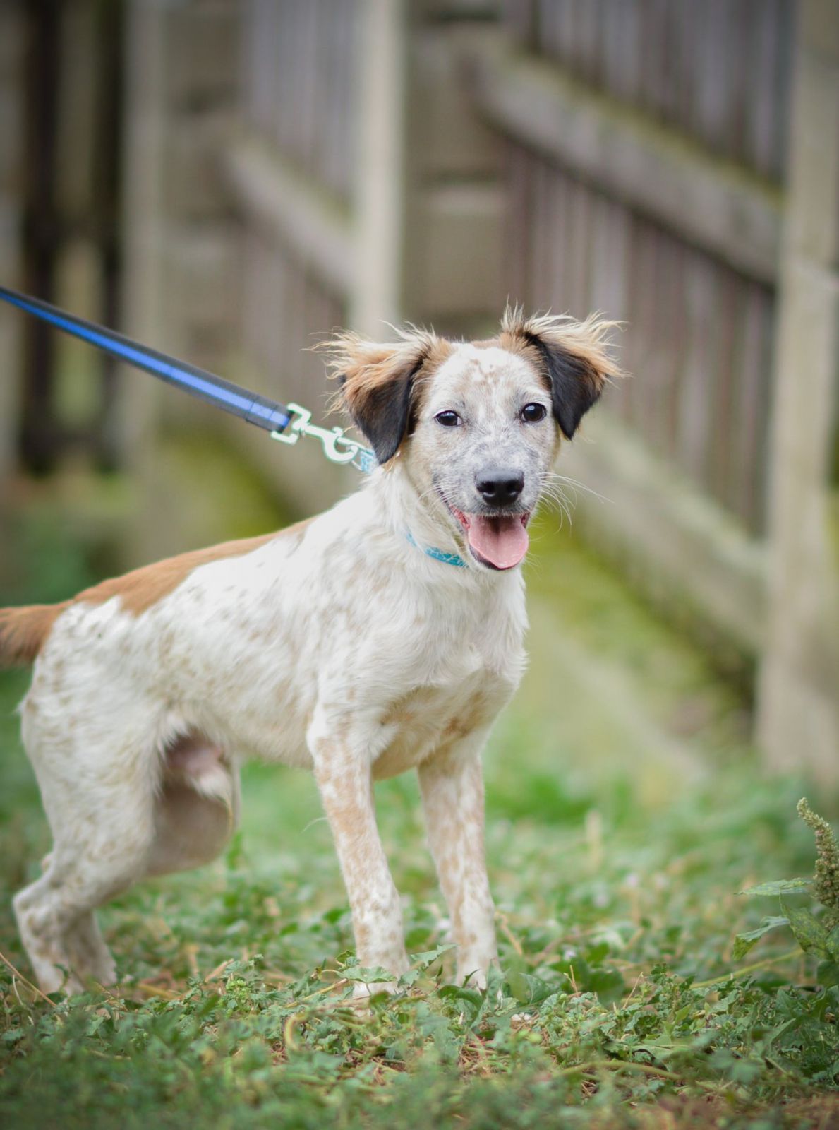 Barva: bílá s hnědým vločkováním a černým čumákem