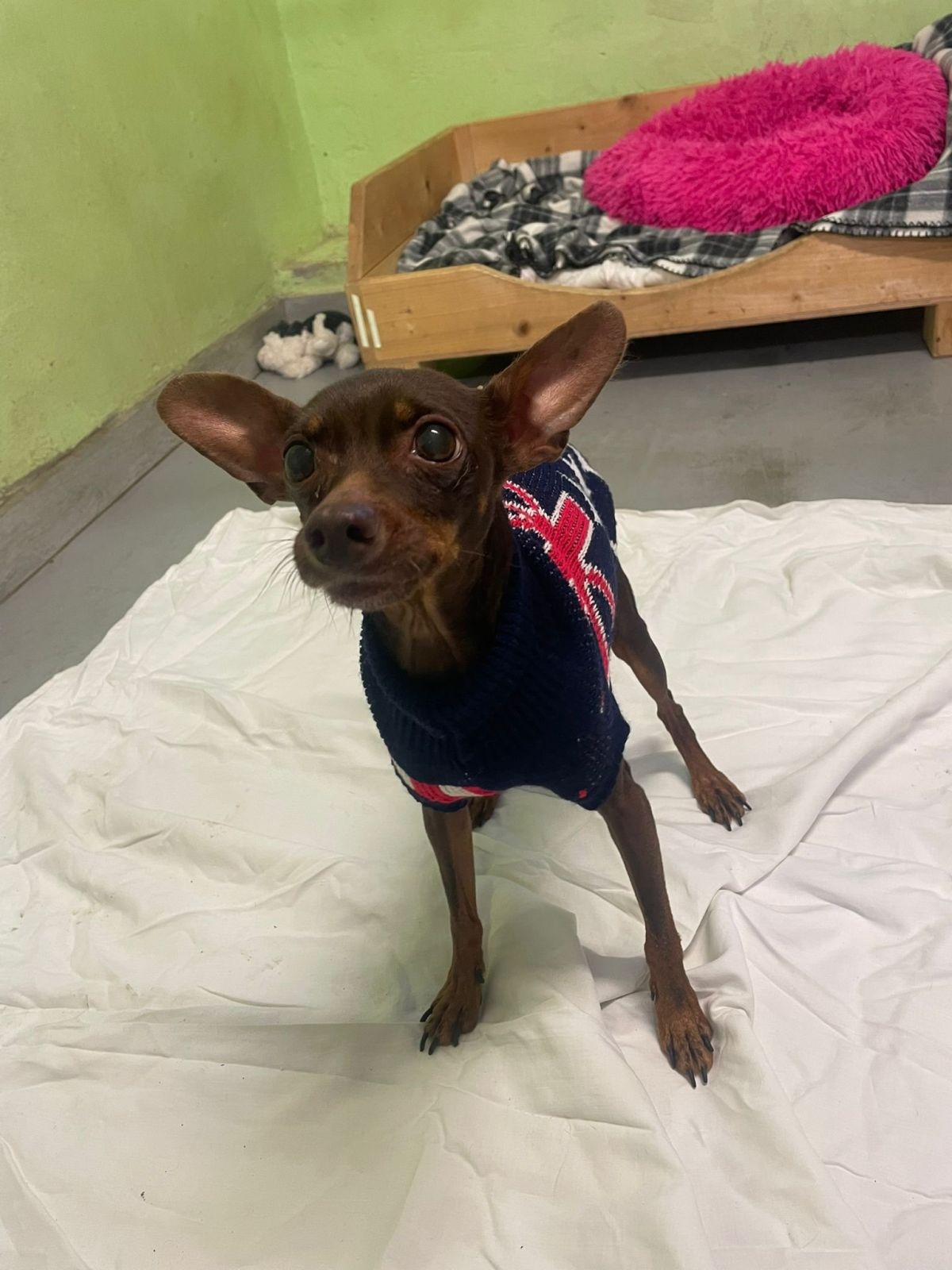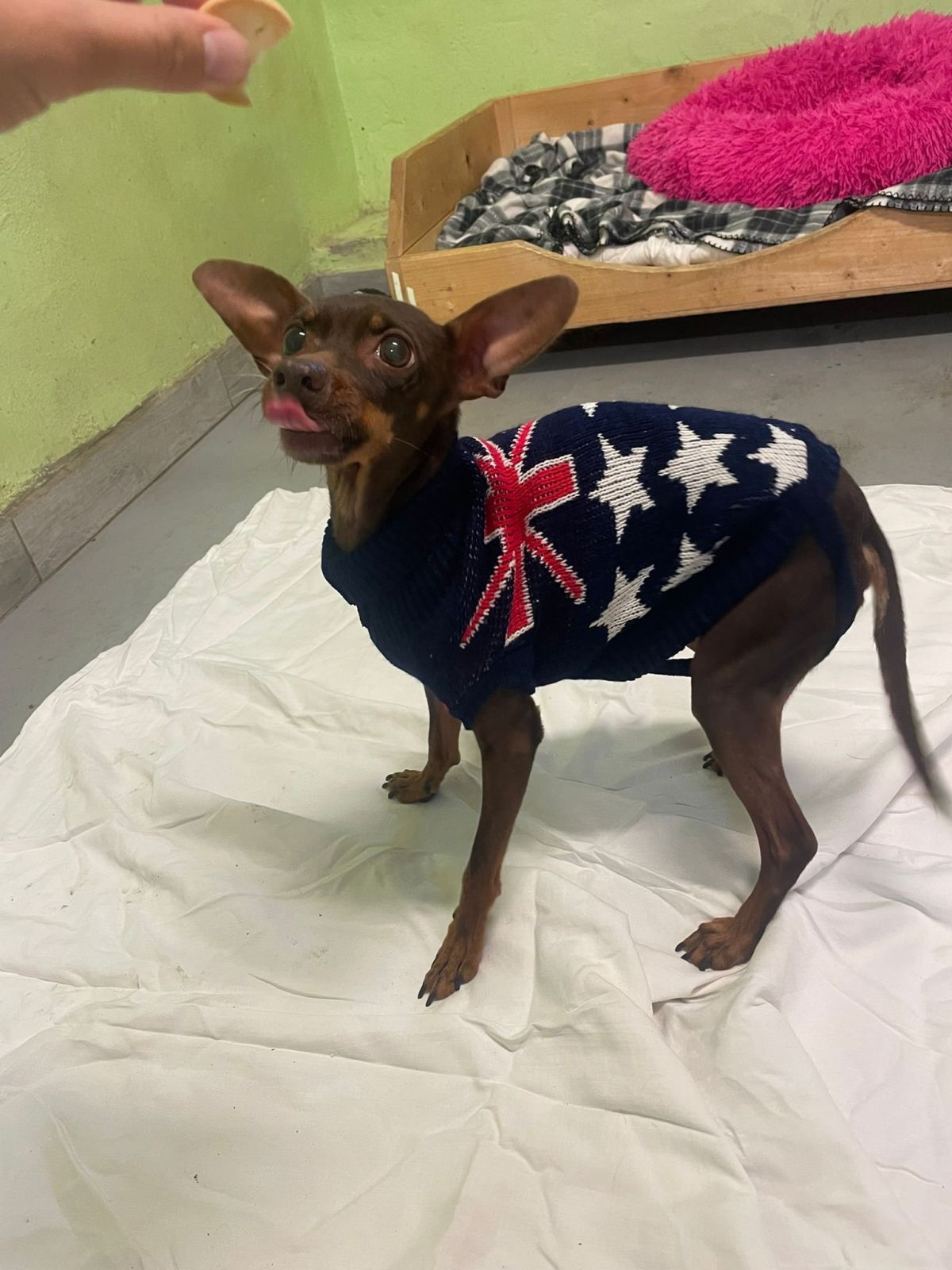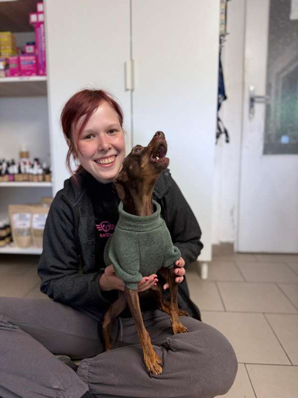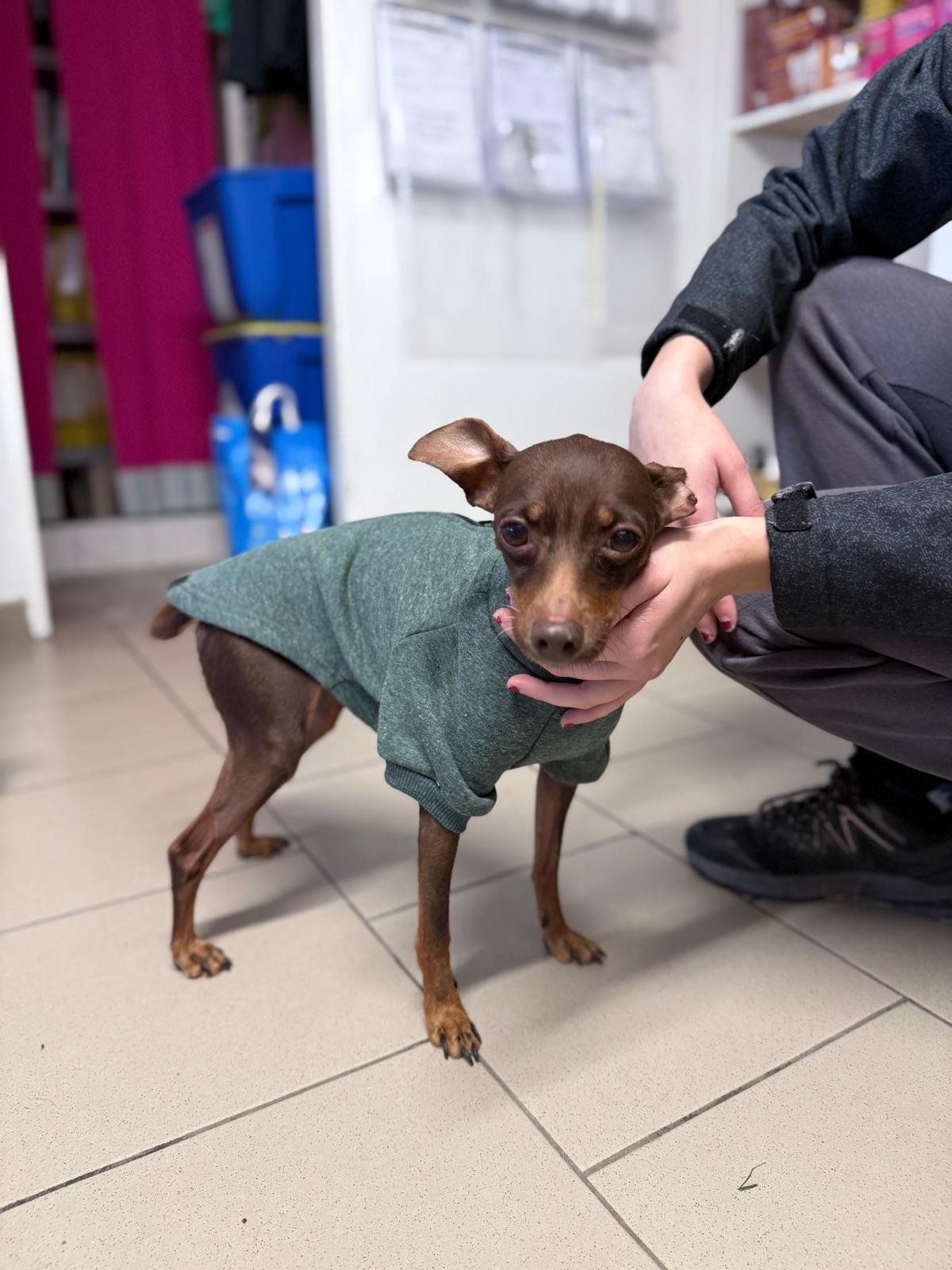 Ahoj, já jsem Dumbo! Je mi kolem 8 let a jsem kříženec pinče. Ale prosím vás – věk vůbec neřešte! Jsem totiž pořád plný energie, nadšení a mám v sobě kus praštěného štěněte, které miluje život (a hlavně deky, mazlení a procházky!). Na začátku možná vypadám trochu opatrně, ale vážně mi stačí jen chvilička... a bum! Změním se v největšího mazlína široko daleko. Miluju lidi a když mi dáš důvod ti věřit, budeš pro mě ten nejdůležitější člověk na světě. Rád se procházím, rád se tulím, rád spím v posteli (jo, tam MUSÍM být, žádné pelechy stranou, díky ). Největší radost mám, když můžu být s tebou – ať už venku nebo zachumlaný s tebou doma pod dekou. S ostatními pejsky jsem se zatím moc nepoznal, takže by to chtělo vyzkoušet, jak bychom si sedli. Ale jinak jsem hodný, skoro čistotný a prostě parťák, co hledá lásku, klid a někoho, komu odevzdám celé svoje srdce. Hledám člověka, který mě obejme, když se budu bát, a rozesměje, když budu dělat blbiny. Já ti za to slibuju věrnost, vděčnost a lásku větší než celá galaxie.