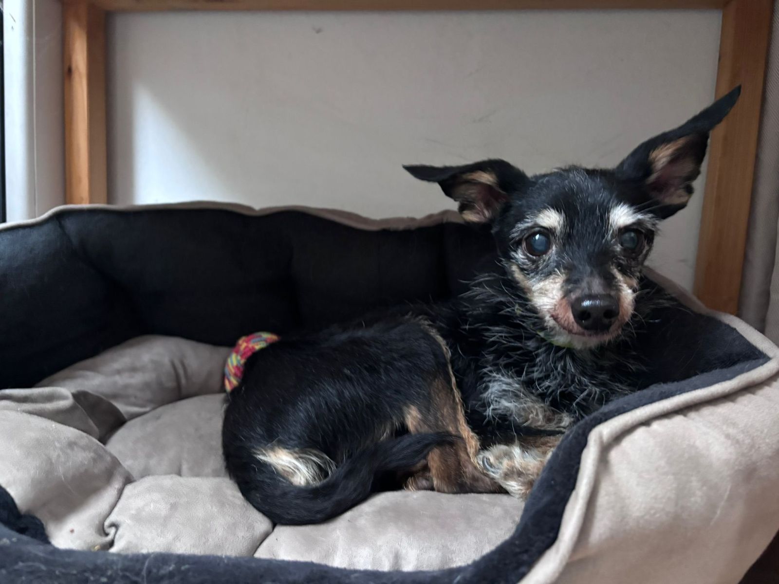 Ahoj… jmenuju se Beny. Jsem malý pejsek, vážím jen 3 kila a je mi asi 13 let. Říkají, že jsem už starý, a možná proto teď čekám na zázrak. O svém životě předtím vám toho moc nepovím… ani sám si nepamatuju, jaké to bylo mít domov. Vím jen, že když jsem přišel sem, byl jsem zanedbaný a hodně unavený. Mám pár bolístek, ale nic, co by mi bránilo mít rád teplý pelíšek, klid a lidskou blízkost. Ze začátku jsem trochu bojácný, ale jen malinkou chviličku. Ne proto, že bych nechtěl, ale protože jsem se ještě nenaučil věřit. Když mi ale dáte čas a budete trpěliví, pomalu se odvážím. A pak už si budu s radostí užívat hlazení, pohlazení po hlavičce a pocit, že jsem konečně něčí. Už nepotřebuju dlouhé procházky ani velká dobrodružství. Ale stále jsem ještě dosti aktivní, takže na nějaké kratší procházky to určitě ještě bude a moc rád si je s tebou užiji. Bohužel si nesednu úplně s každým pejskem, takže se vše musí vyzkoušet. A co se týče kočiček, ty raději také ne, rád je proháním. Vím, že to jsou pro někoho velké překážky, šle ja věřím, Věřím, ze se dočkám. Opravdu chci jen teplo domova a člověka, který mi otevře své srdce. Člověka, který mi ukáže, že i na stará kolena může přijít něco krásného. Moc bych si přál být součástí rodiny. Ne jen na chvíli. Opravdu doma. Možná už nemám před sebou dlouhé roky… ale o to víc lásky vám dokážu dát. Prosím, dejte mi šanci.
