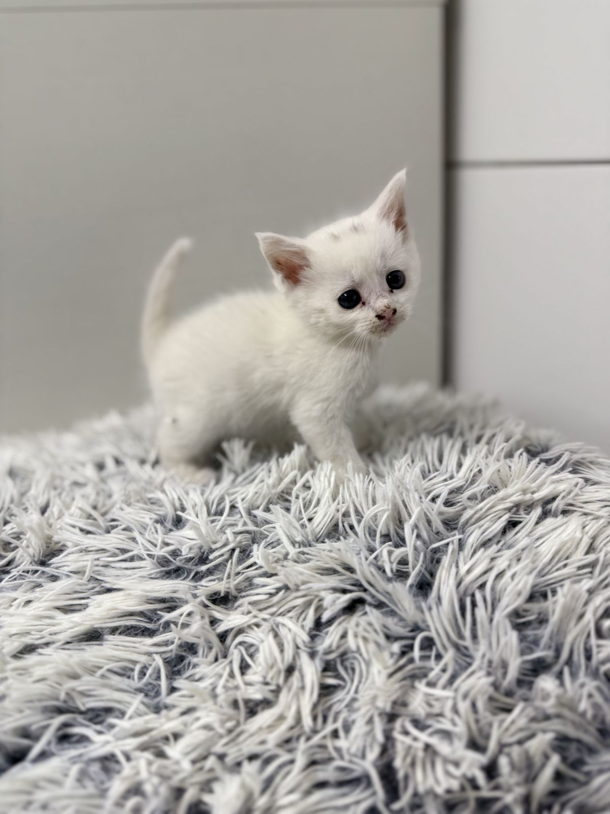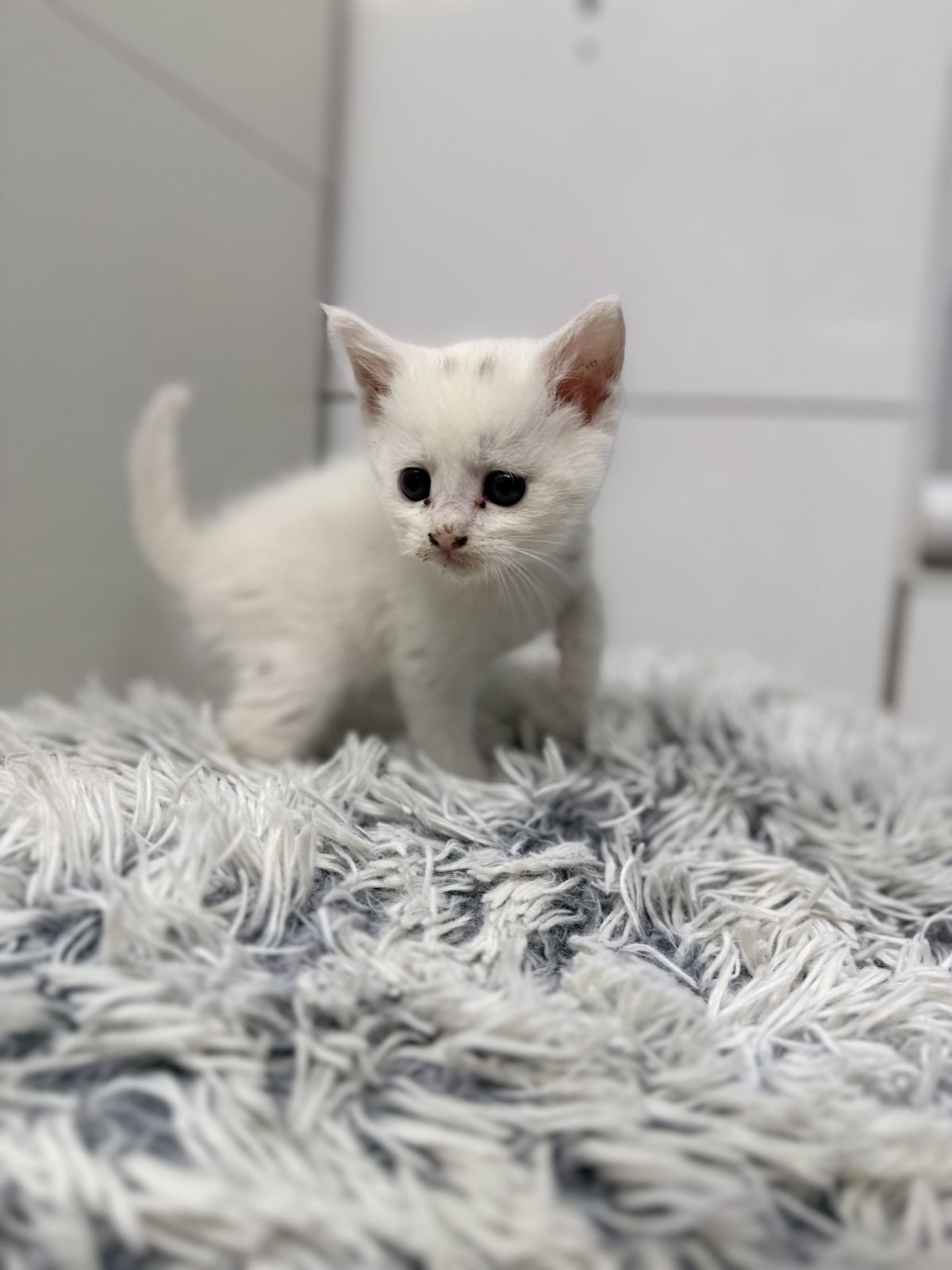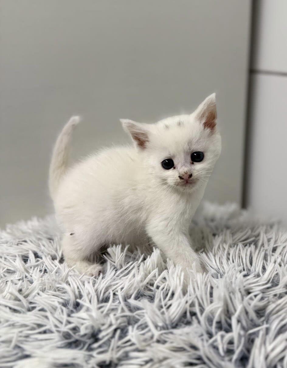 Když nás našli, byli jsme maličcí, kost a kůže, ale jinak v pořádku. Teď už sílíme každým dnem – roste z nás trojice krásných bílých koťat s modrýma očima, která se učí, že svět může být i laskavý.