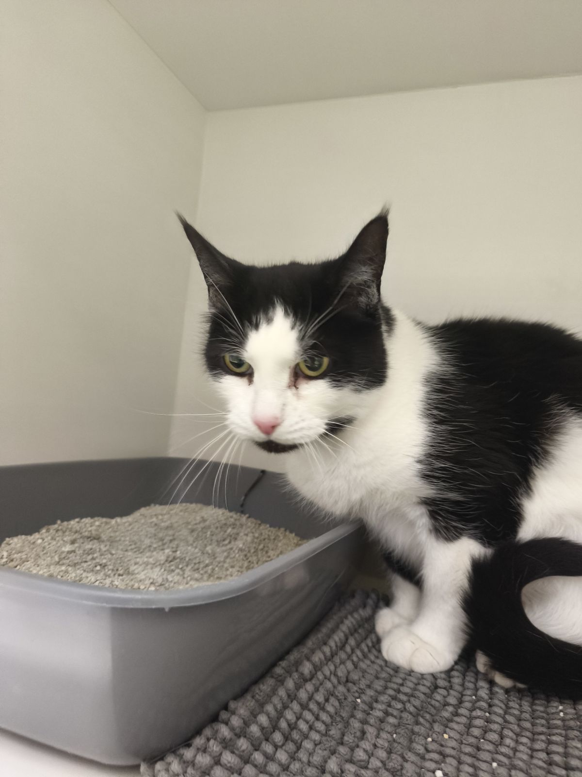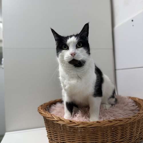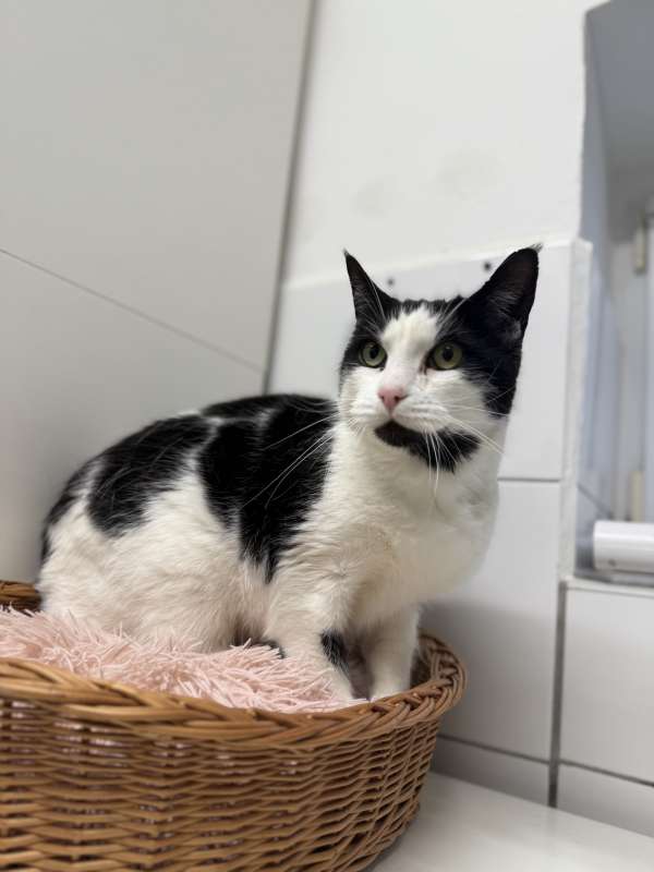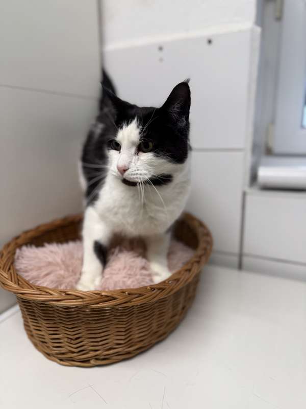 Jsem nádherný černo-bílý kocour a když říkají, že jsem velkej fešák, tak to myslí doslova – mám skoro 6 kilo a jsem největší kočičí kluk v celém útulku! Když mě někdo vezme do náruče, pěkně se prohne! a do košíčku na fotky sem se tetě skoro nevešel.