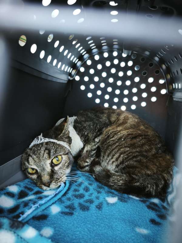Můj příběh není ani trošku veselý – venku mě našli v hrozném stavu, s obličejem rozežraným a hnijícím. Bylo mi zle, bolelo to a každý den byl boj o přežití. Naštěstí jsem měl obrovské štěstí – někdo mě včas odvezl na veterinu, kde mi zachránili život. Teď jsem v dočasné péči, kde se o mě starají a snaží se mě krok za krokem vrátit zpátky do života.