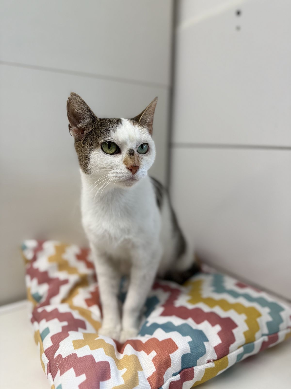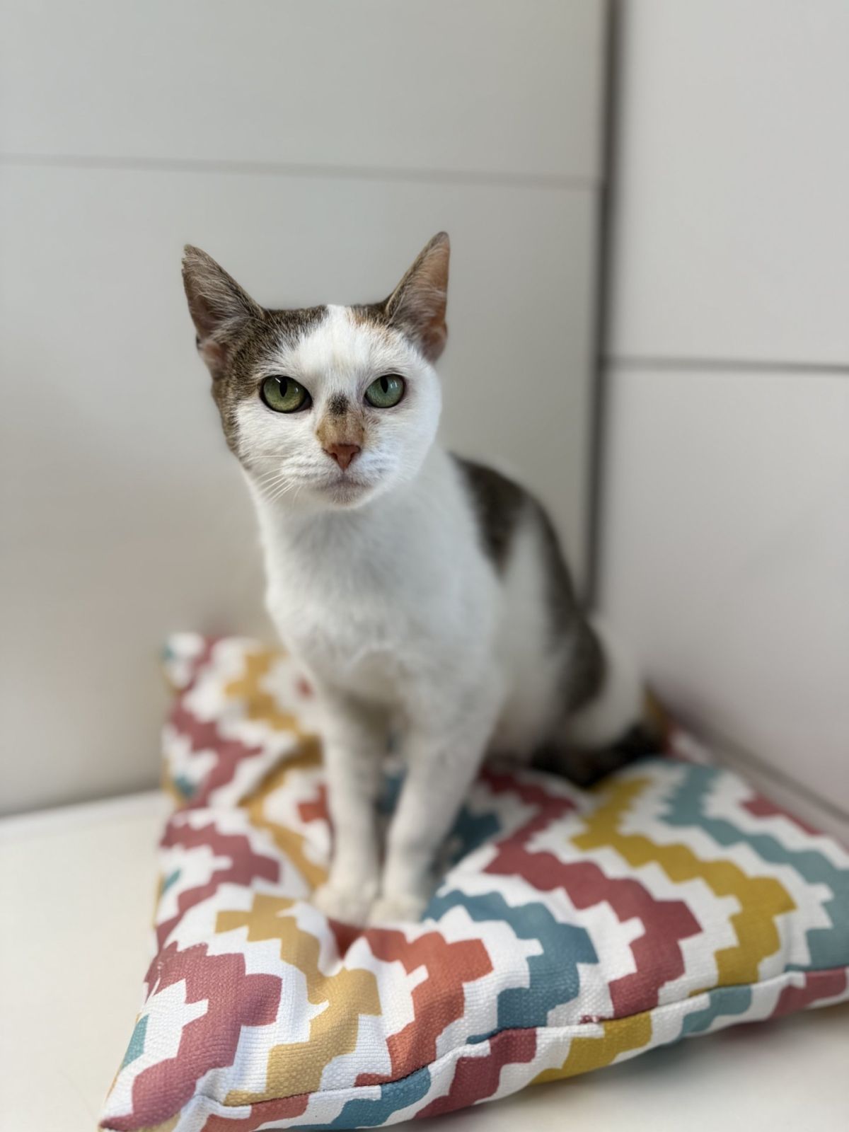 Jsem spíš klidná a trošku opatrná kočka – chvíli mi trvá, než člověku začnu věřit. Když ale zjistím, že mi nechce ublížit, ráda si nechám dát pohlazení a užívám si klid kolem sebe.