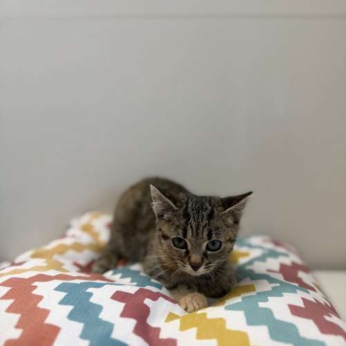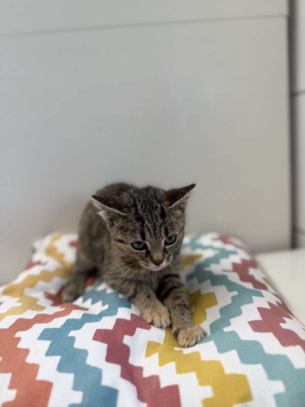 Jsem jedno ze tří koťátek statečné kočičí maminky Luny. Moji sourozenci se jmenují Lola a Leon – jsme parta, která se našla venku, kde jsme společně s mamkou bojovali o přežití. Jsou nám teprve asi dva měsíce, ale už jsme toho zažili dost. Přinesli jsme si blešky i svrab a zatím se hodně věcí bojíme, protože pro nás je všechno nové a neznámé.