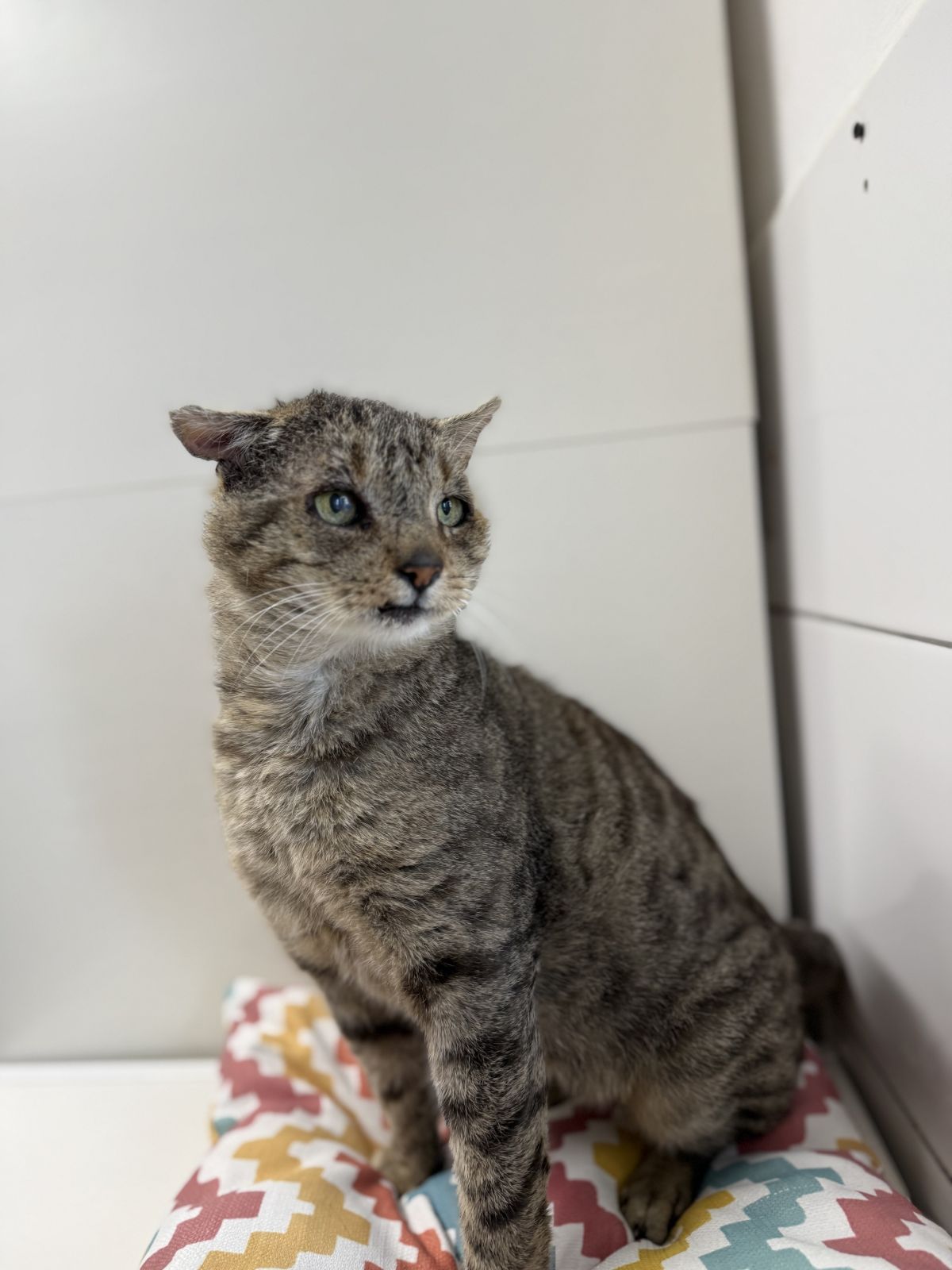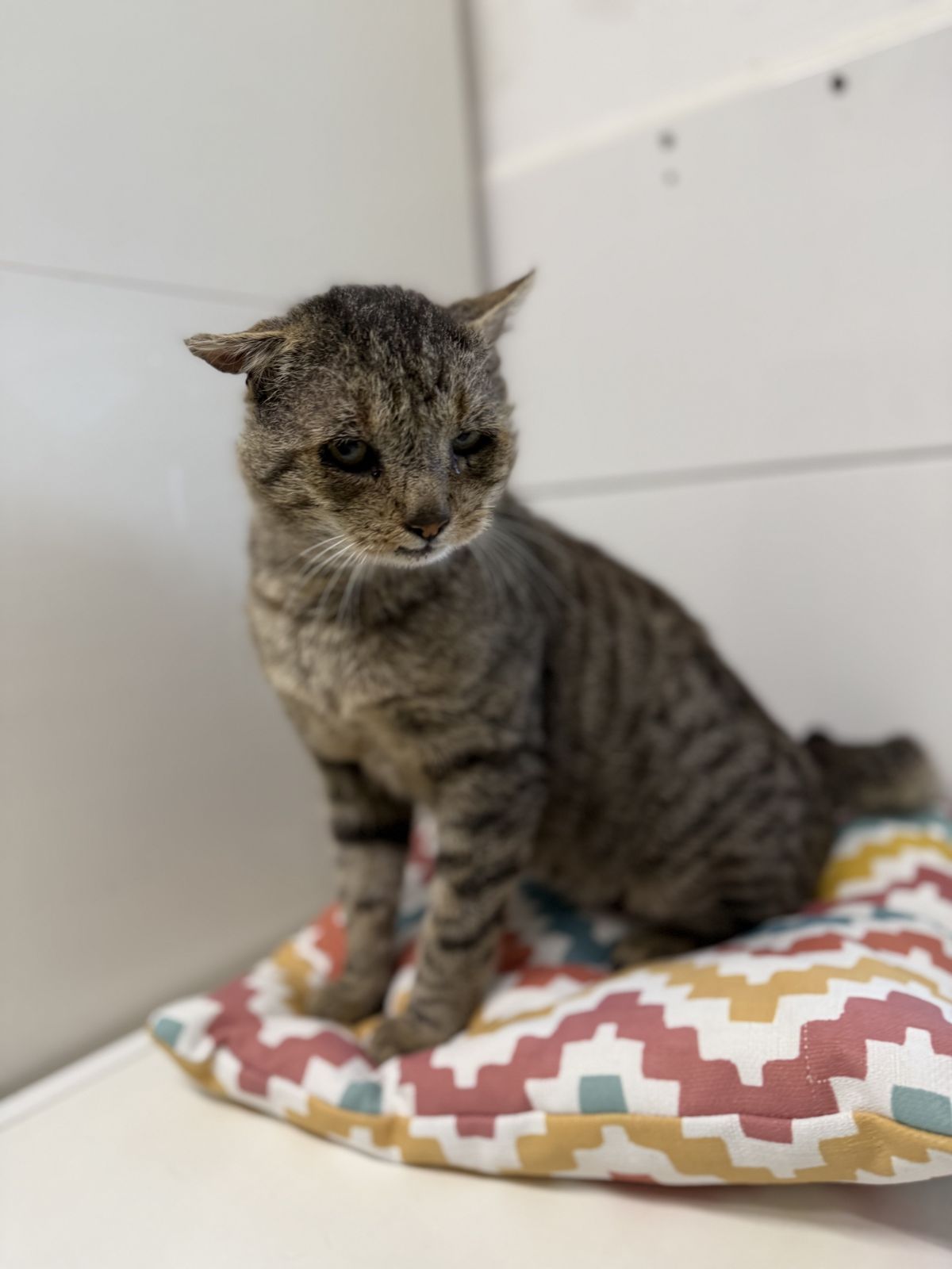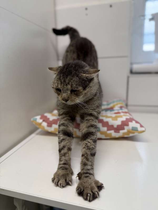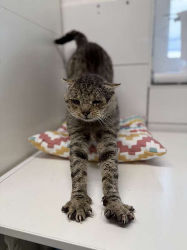 starý, pochroumaný kocour, který si zaslouží dožít v teple
