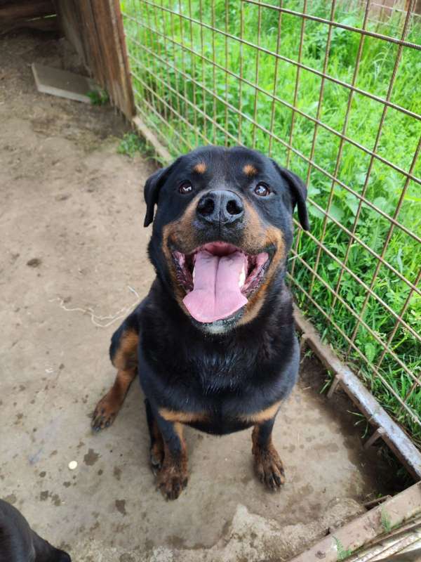 Zachariáš je prostě kus chlapa:). Nebo spíš kus přítulného medvěda, mírumilovného hromotluka s velkým rotvajleřím srdcem. Byl odebrán KVS a dostal se k nám spolu s fenkou Merulou. S tou vychází dobře, ale na ostatní pejsky se zatím moc netváří. Je to velký pohodový, zavalitý pes, nasadili jsme mu dietku a budeme s ním ladit formu do plavek. Zatím je jeho procházkové tempo víc než poklidné. Zachariášovi jsou 4 roky, má rád lidi, vzhledem ke své obezitě je trochu neohrabaný, ale neskáče ( to asi ani neumí:), jen se chce mazlit a směje se na lidi už z principu. Zachariáš hledá milovníka rtw, pro pohodový nenáročný život. Uvítal by přístup na zahrádku, ale zvykl by si i v bytě. Může jít do adopce spolu s Merulou, to by bylo ideální.. Bohužel nevíme, zda si někdo vezme dva velké psy, budeme muset proto hledat domov i každému zvlášt. Do adopce odejde kastrovaný, očkovaný, čipovaný, odčervený, odblešený, na základě podpisu adopční smlouvy. Zájemce prosíme o vyplnění adopčního dotazníku: https://forms.gle/XhktirLMoEPK1g1A6