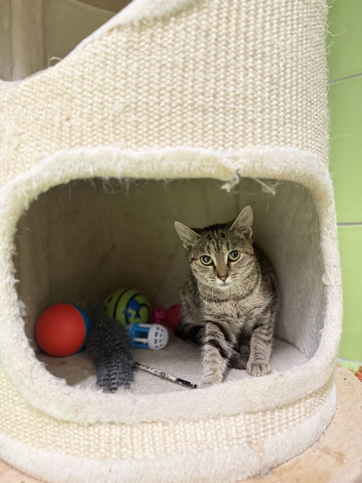 Narodila jsem se venku a byla jsem tam s maminkou Annie, než nás odchytili a odvezli do útulku. Od té doby je všechno lepší, ale pořád trochu strašidelné. Lidské ruce jsou pro mě zatím neznámé a děsivé – syčím, prskám, bojím se. Nechci nikomu ublížit, jen prostě nevím, co čekat.
