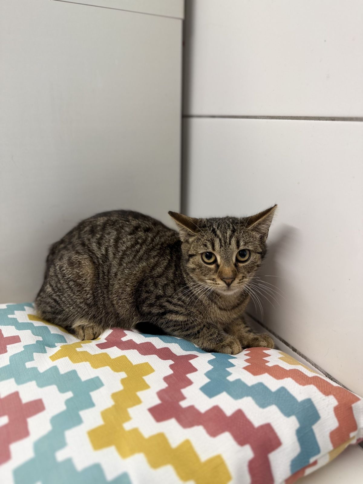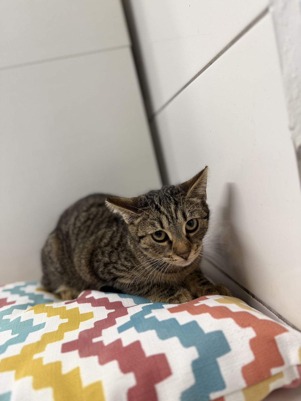 V KARANTÉNĚAhoj, říkají mi Carola a jsou mi přibližně čtyři roky. Vyrůstala jsem venku a stejně jako ostatní jsem sem přišla nemocná a vyděšená – mám svrab a k lidem zatím moc důvěry nemám. Nejsem ale tak prudká jako někteří jiní, spíš se snažím držet si odstup a nenechám se chytit. Bude potřeba hodně času a trpělivosti, než zjistím, že se už nemusím bát. Možná nikdy nebudu mazlivá kočka na klín, ale i já si zasloužím bezpečí a domov.