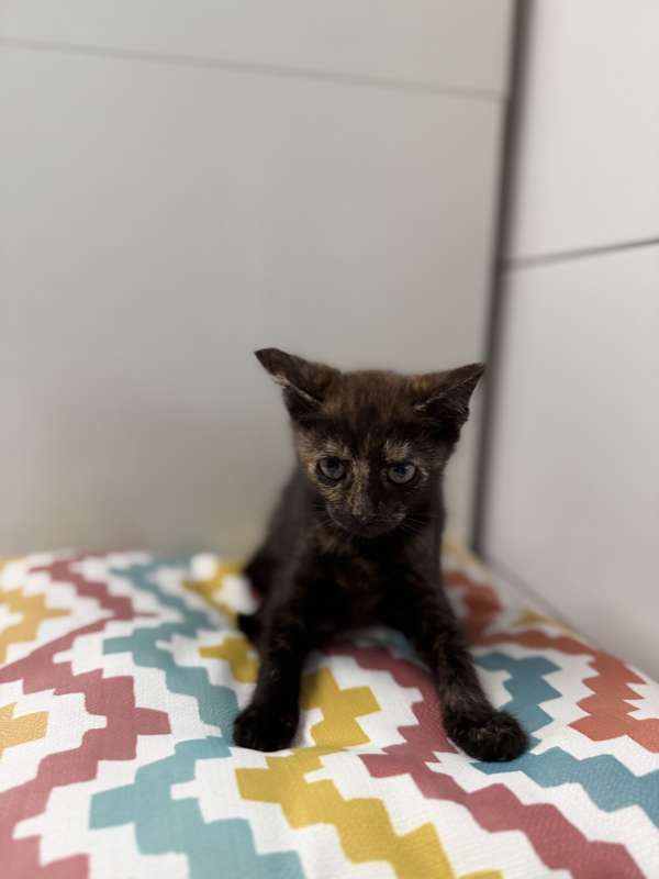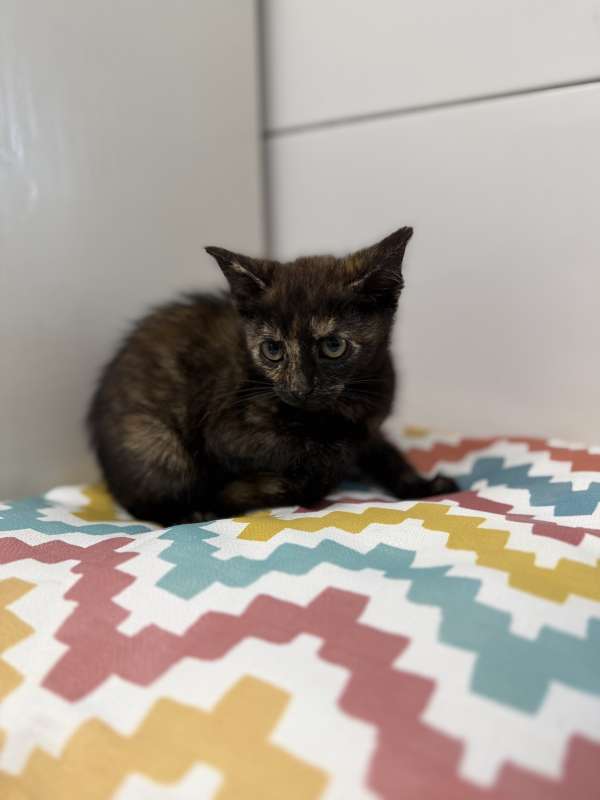 REZERVOVÁNAAhoj, já jsem malá Clea. Jsou mi asi tři měsíce a do útulku jsem přišla se svrabem a spoustou strachu. Na rozdíl od dospělých koček z naší skupiny ale nejsem tolik agresivní – spíš se bojím a schovávám. Pomalu si začínám zvykat, že člověk není nebezpečí, ale šance na lepší život. Sice mi to zatím moc nejde, ale díky svému věku mám velkou šanci, že se z bojácného kotěte stane přítulná kočičí kamarádka.