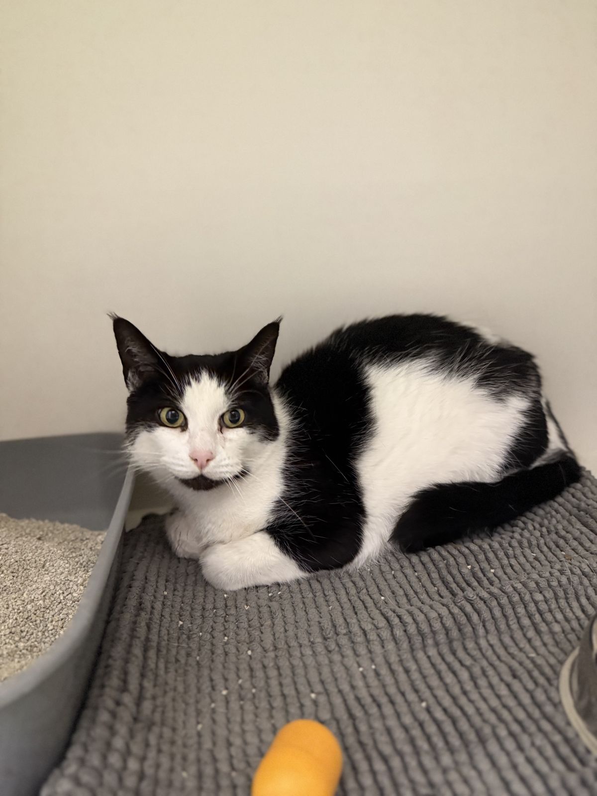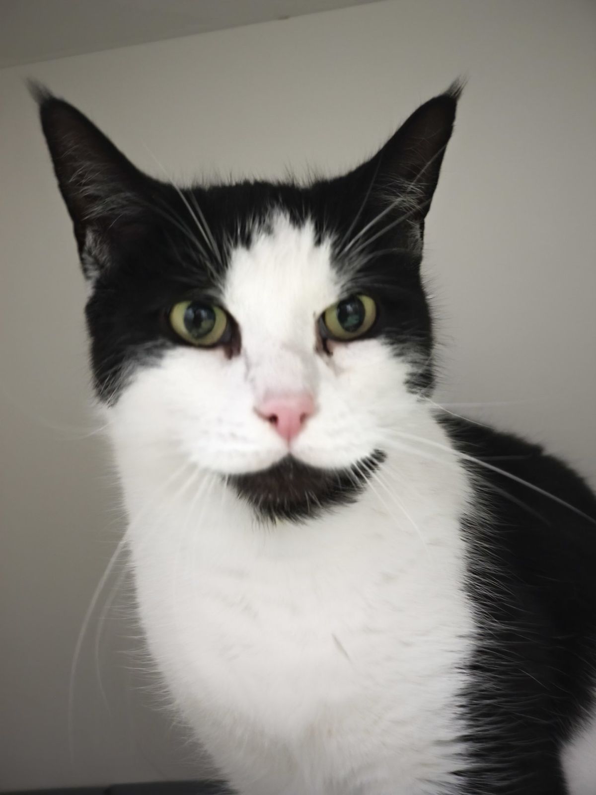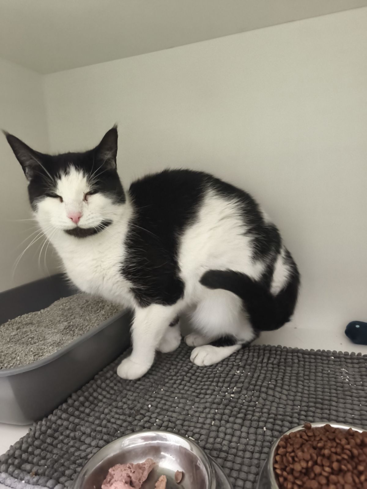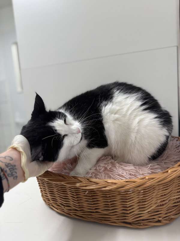 Jsem nádherný černo-bílý kocour a když říkají, že jsem velkej fešák, tak to myslí doslova – mám skoro 6 kilo a jsem největší kočičí kluk v celém útulku! Když mě někdo vezme do náruče, pěkně se prohne! a do košíčku na fotky sem se tetě skoro nevešel.