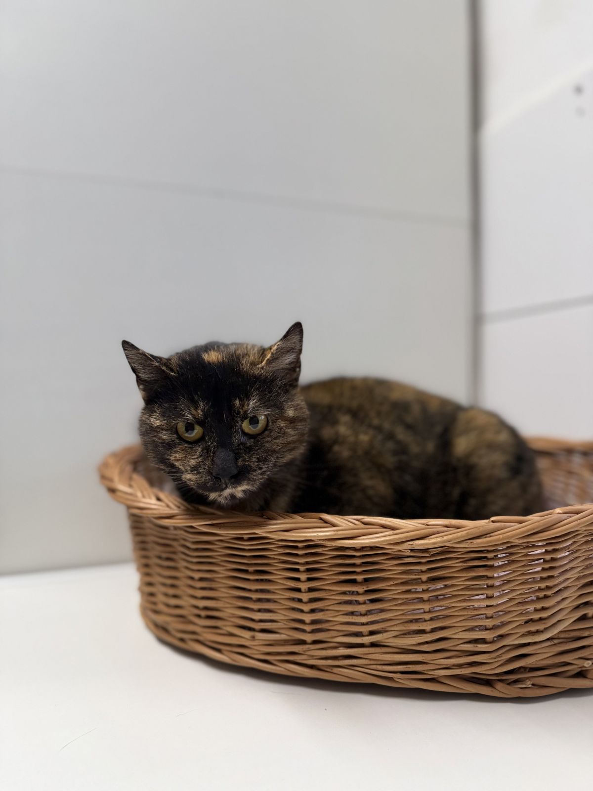 Jsou mi zhruba tři roky a našli mě venku, kde jsem se o sebe musela nějakou dobu starat sama. Přinesla jsem si s sebou i nepříjemnou vzpomínku v podobě svrabu v uších, který se teď už léčí – každým dnem je mi o kousek lépe.