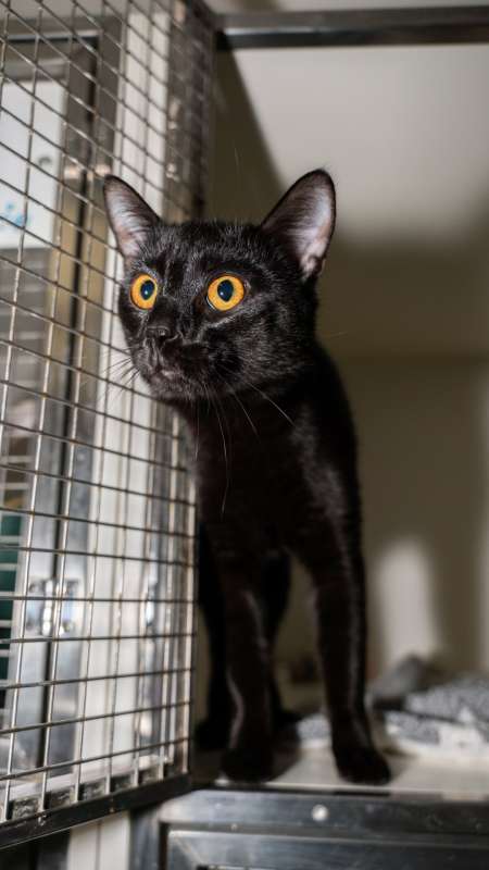 Jsem asi rok a půl starý kocour a na první pohled nepřehlédnutelný – celý černý, s velkýma očima, které si vás hned získají