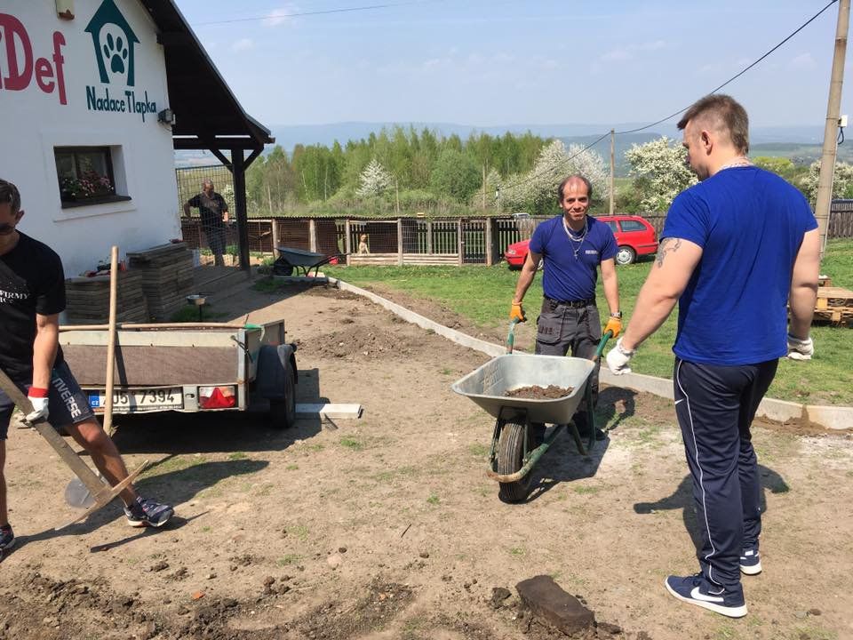 Tento víkend bylo nádherné počasí, jaro nám vlilo novou sílu do žil a zas se u nás děly věci! Náš skvělý partner Top Firmy Teplice zorganizoval nedělní brigádu, takže se velkého pokroku dočkala naše cesta a vyštěrkování ještě nedávno blátivé lázně za brankou útulku, v novém je i náš zahradní nábytek a přední zahrádka, na které pejskové každý den běhají.